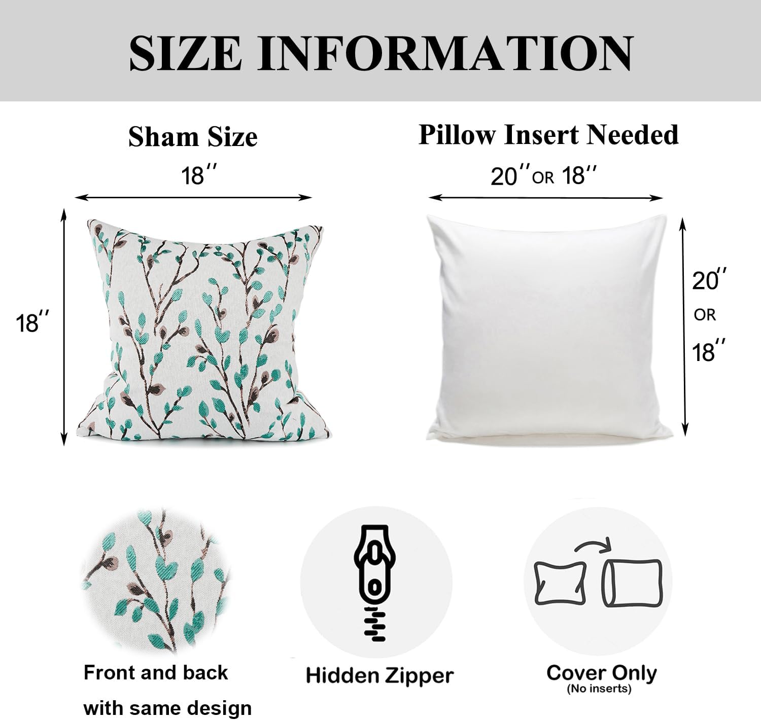 YOUR SMILE Classical Embroidery Jacquard Green Square Decorative Throw Pillow Case Cushion Cover 18x18 inch