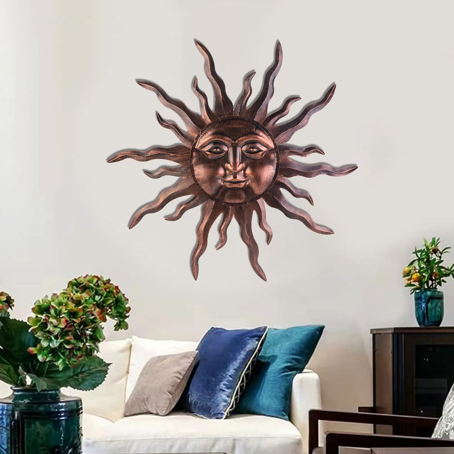- 【Large Size Wall Decor】This metal sun wall decor measures 30”L x 1”W x 30”H, extra large size makes it even more eye-catching and dazzling when used for indoor or outdoor decoration. The classic design allows it to blend naturally into any wall, adds color and personality to your home.