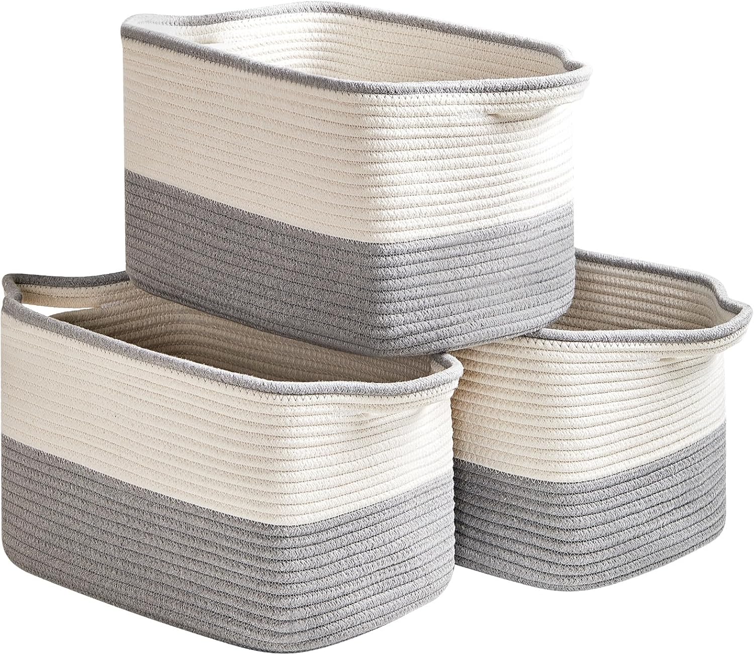 Cotton Rope Storage Basket Set of 3 (15"x10.2"x9.1") - Rectangle Storage Bins - Versatile Toy Storage Organizer - Perfect for Kids, Dog Toys, Books, Shelves - White & Grey