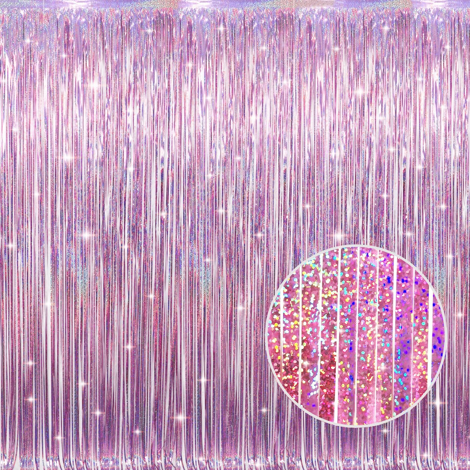 - Package Includes:1 pack laser pink foil fringe curtain,3.2 ft x 8.2 ft each,suitable for hanging on a door or coverage a wall fully