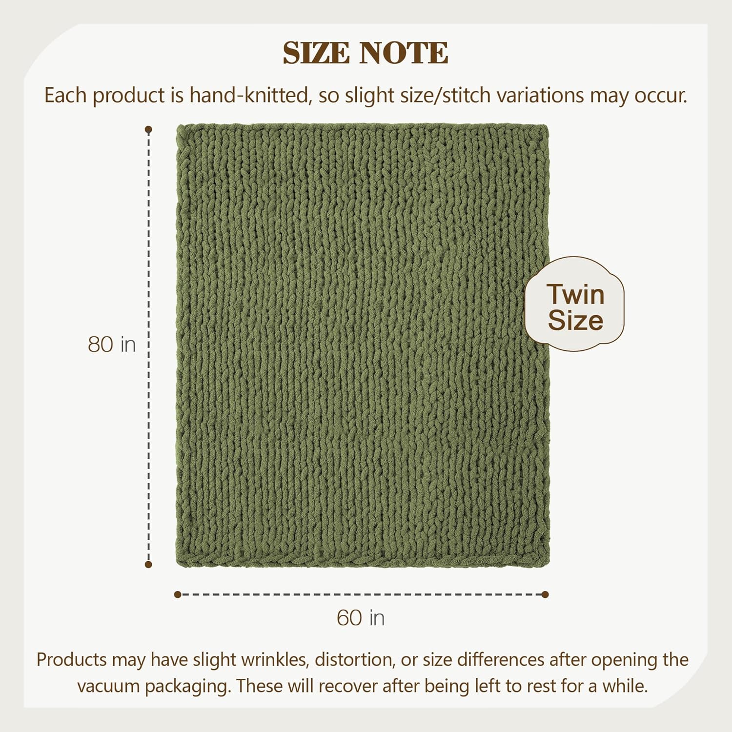 Carriediosa Chunky Knit Throw Blanket 60" X 80" Twin, 100% Hand Made Large Chenille Loop Yarn Soft Fluffy Throws for Couch Sofa Bed, Big Crochet Cozy Heavy Thick Cable Woven Blankets, Olive Green