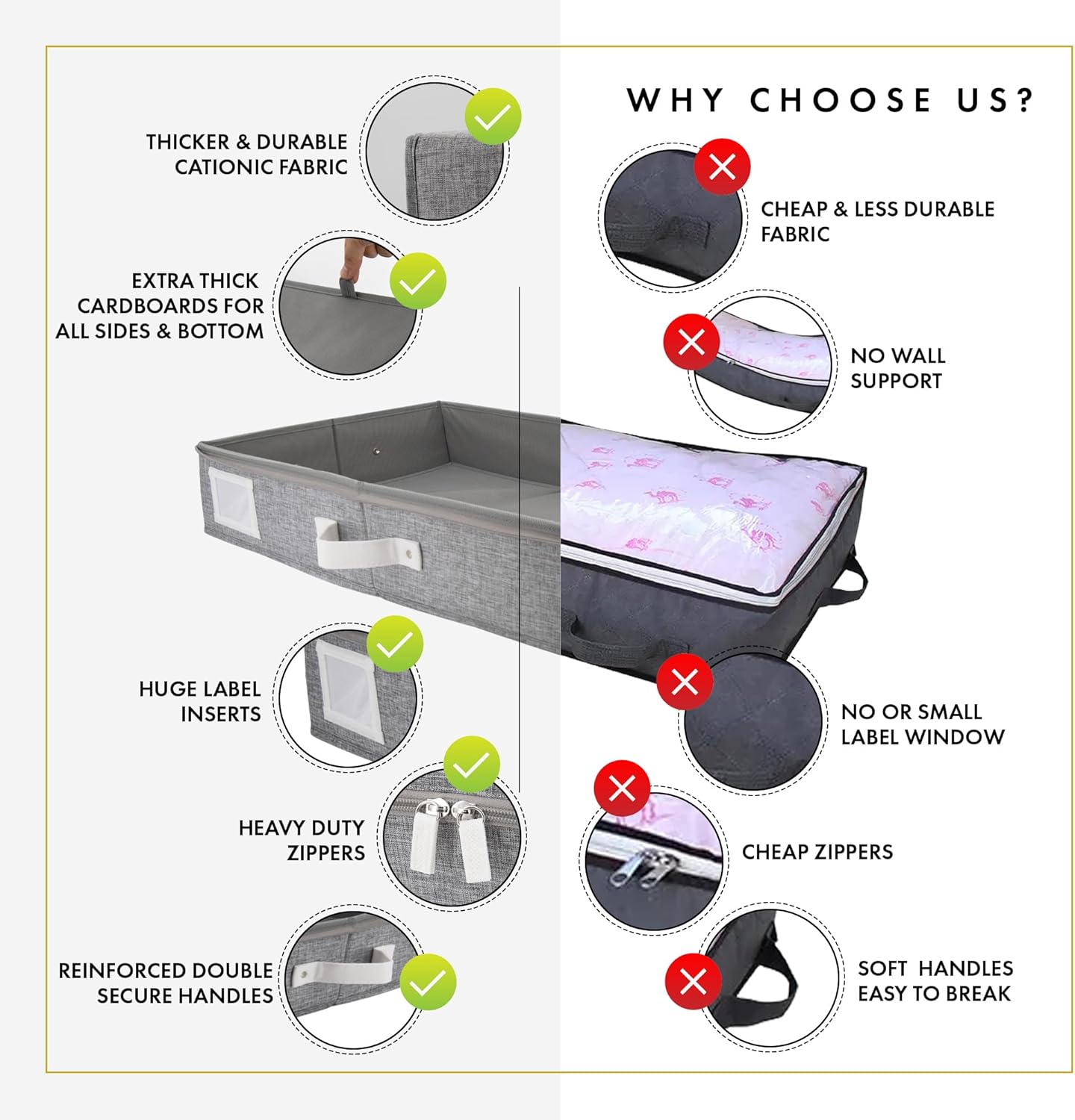- ๐๐๐๐ฏ๐ฒ ๐๐ฎ๐ญ๐ฒ ๐๐ข๐ฉ๐ฉ๐๐ซ ๐๐ฅ๐จ๐ฌ๐ฎ๐ซ๐: Committed to safety and organization, our under bed flat storage boxes are precisely tailored. The zipper of our storage containers for under the bed ensures that the items inside are protected from dust and other elements that can cause damage. Our under bed storage with lid are pusposely designed with durability and strength making it ideal for flat clothing storage that require frequent opening and closing, or those that carry heavy loads.