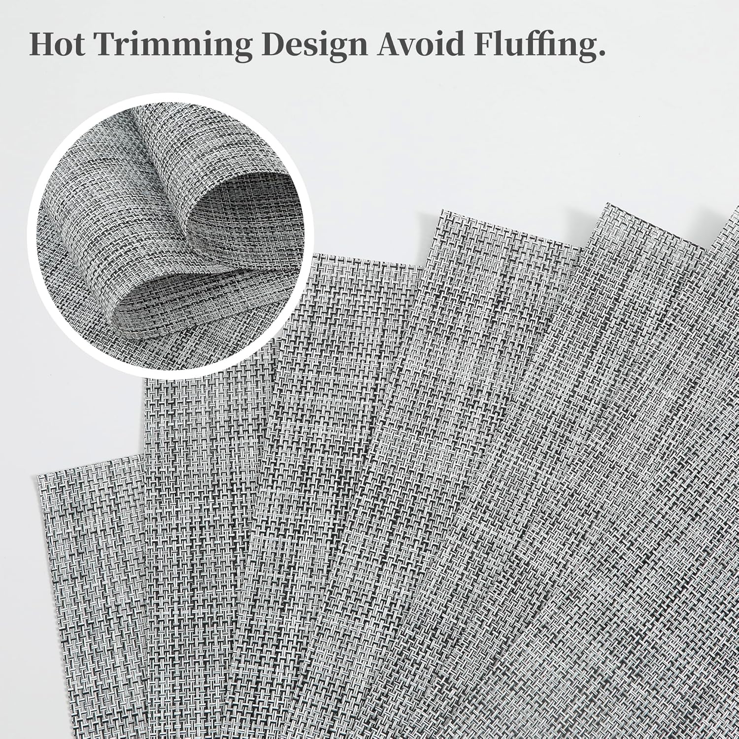 Leetaltree Linen Grey Placemats Set of 8 - Heat Resistant Non-Slip Place mats for Dining Table, Washable Durable PVC Vinyl Woven Table Mats(Linen Grey, 8)