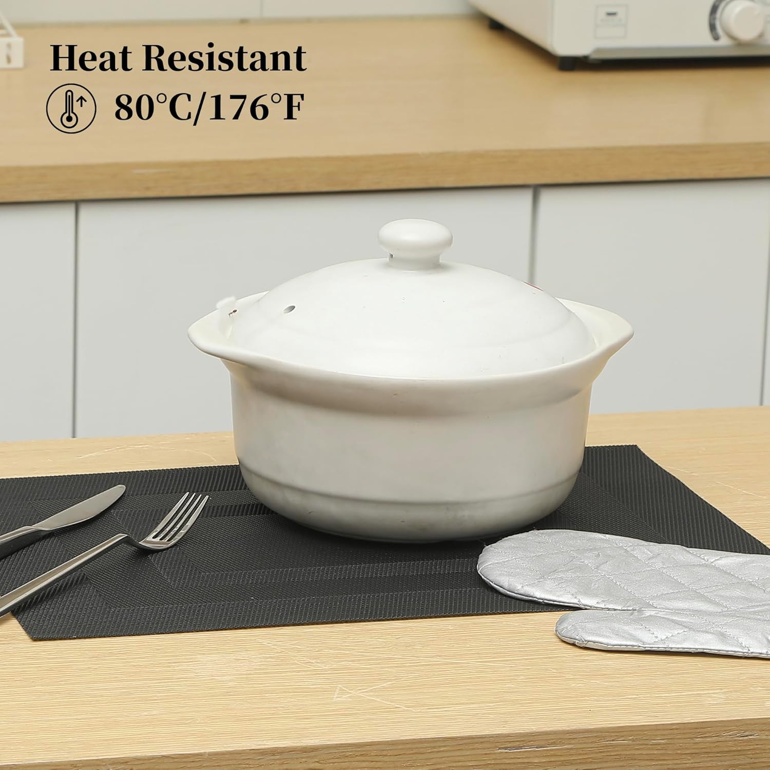 - Protects Your Table: Keep your table safe from scratches and spills with our heat-resistant placemats. They can withstand temperatures up to 176℉(80℃) and help keep food warm. Add style to your dining setting while ensuring table protection.
