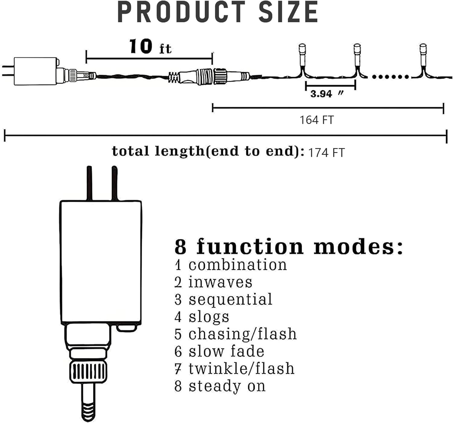 - 8 Lighting Modes: These Christmas lights offer eight distinctive lighting modes - combination, in waves, sequential, slow glow, chasing/flash, slow fade, twinkle/flash, and steady on. Each style imparts a bespoke ambiance, granting you the liberty to choose the right one to match different settings and moods.