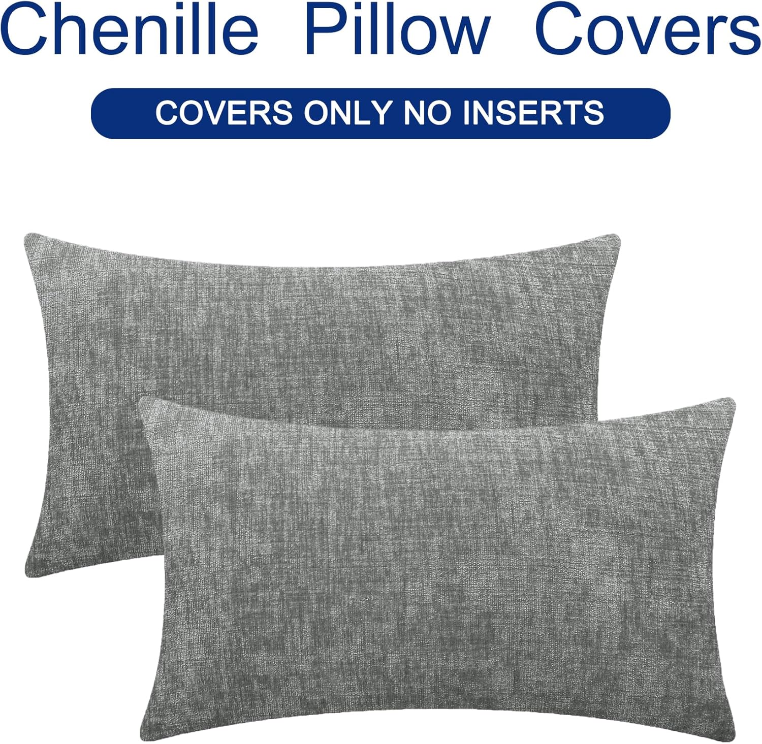 CaliTime Throw Pillow Covers Decorative 16 X 26 Inches Pack of 2 Cozy Chenille Cushion Cases for Couch Sofa Bed Living Room Home Medium Grey