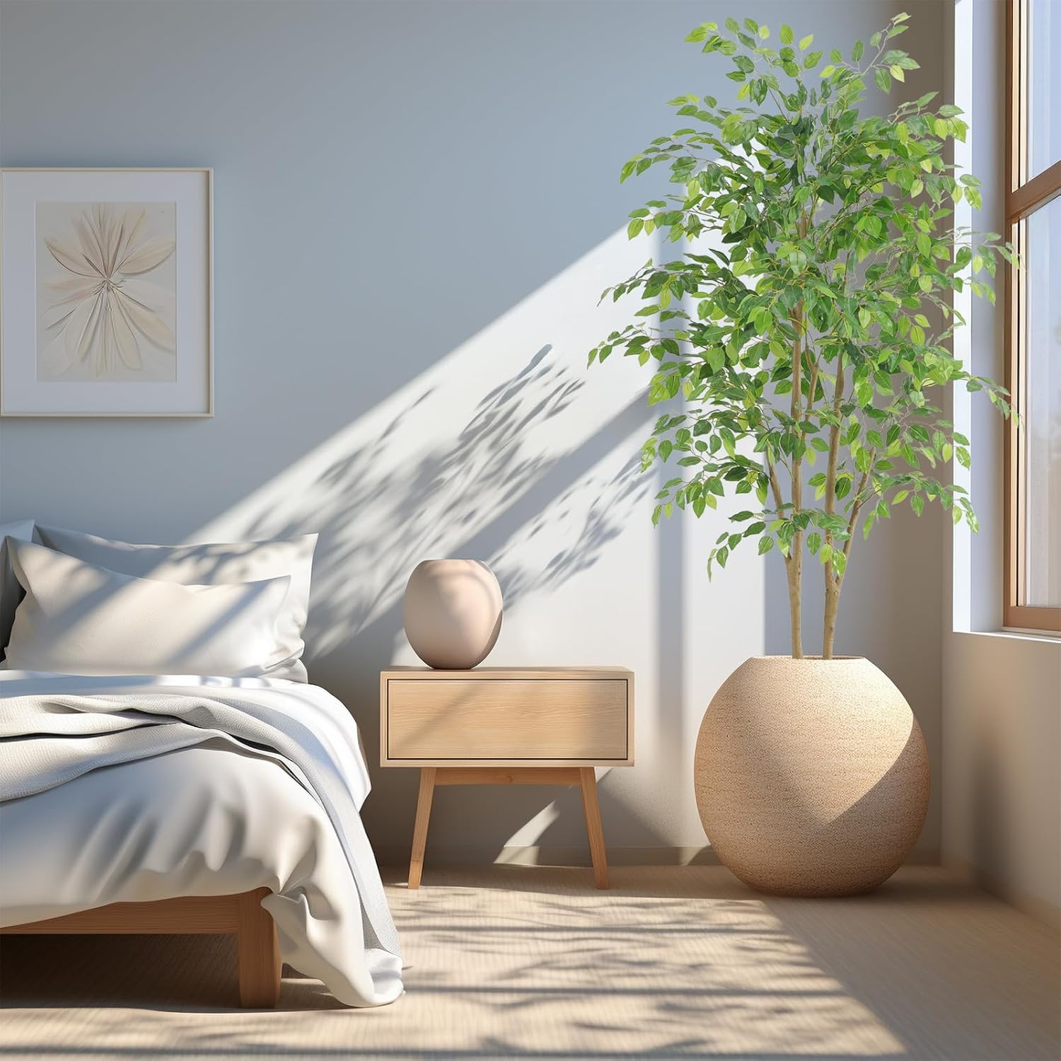 - 【Realistic Looking】This ficus tree artificial uses a technique that closely resembles the surface of real ficus tree leaves, making the surface of the leaves as smooth and glossy as a real ficus tree. It also features a full yet airy design, natural interfaces, and trunk, making the tree looks very realistic. It will be a beautiful sight in your home.