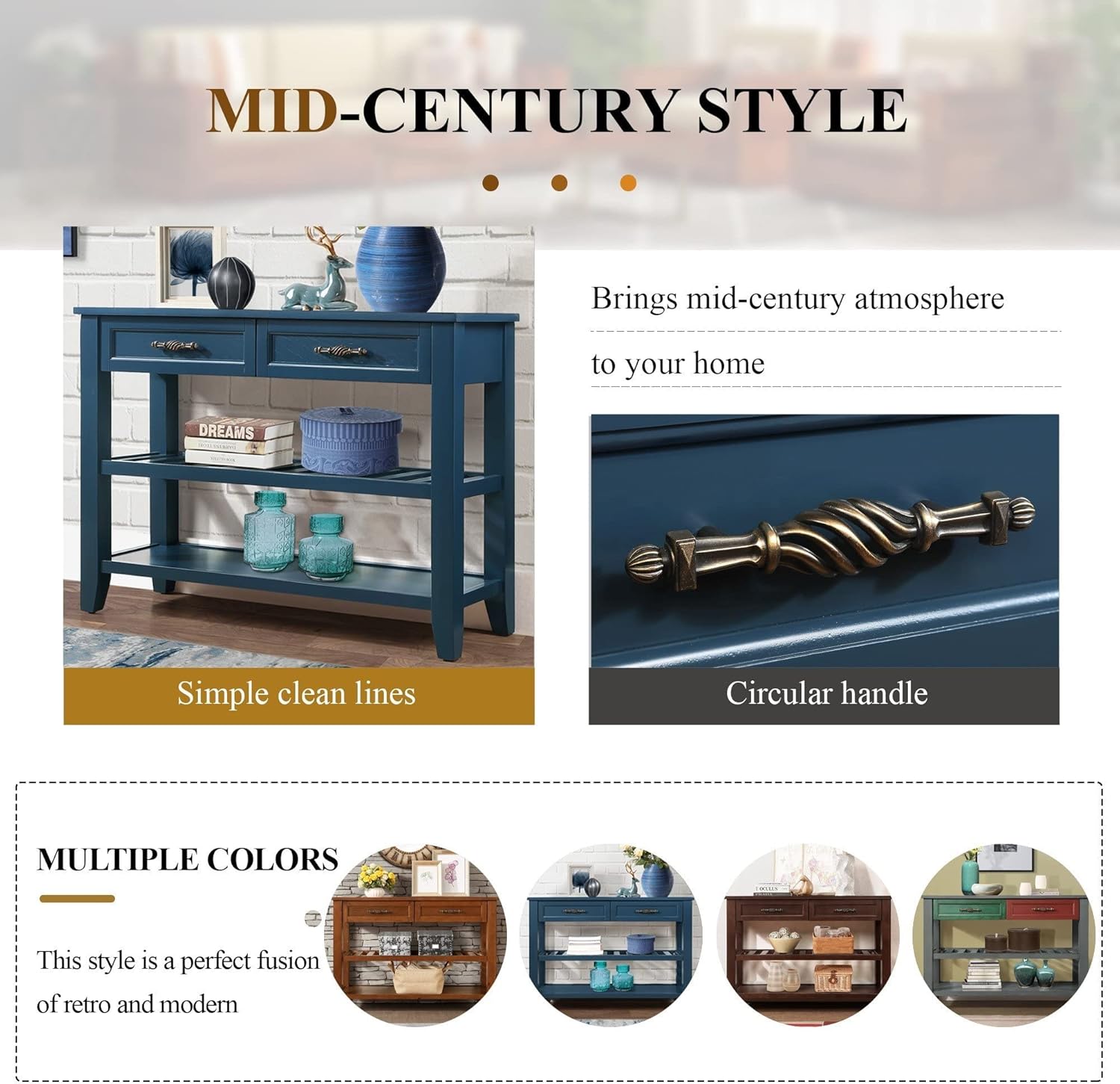 - 【Multifunctional Console】 This console can be used not only as a porch table and sideboard, but also as a sofa table, porch table and buffet table. You can put it in the kitchen, bedroom, hallway, living room, office, etc. A space-saving desk can help you organize your supplies and keep your room clean and organized.