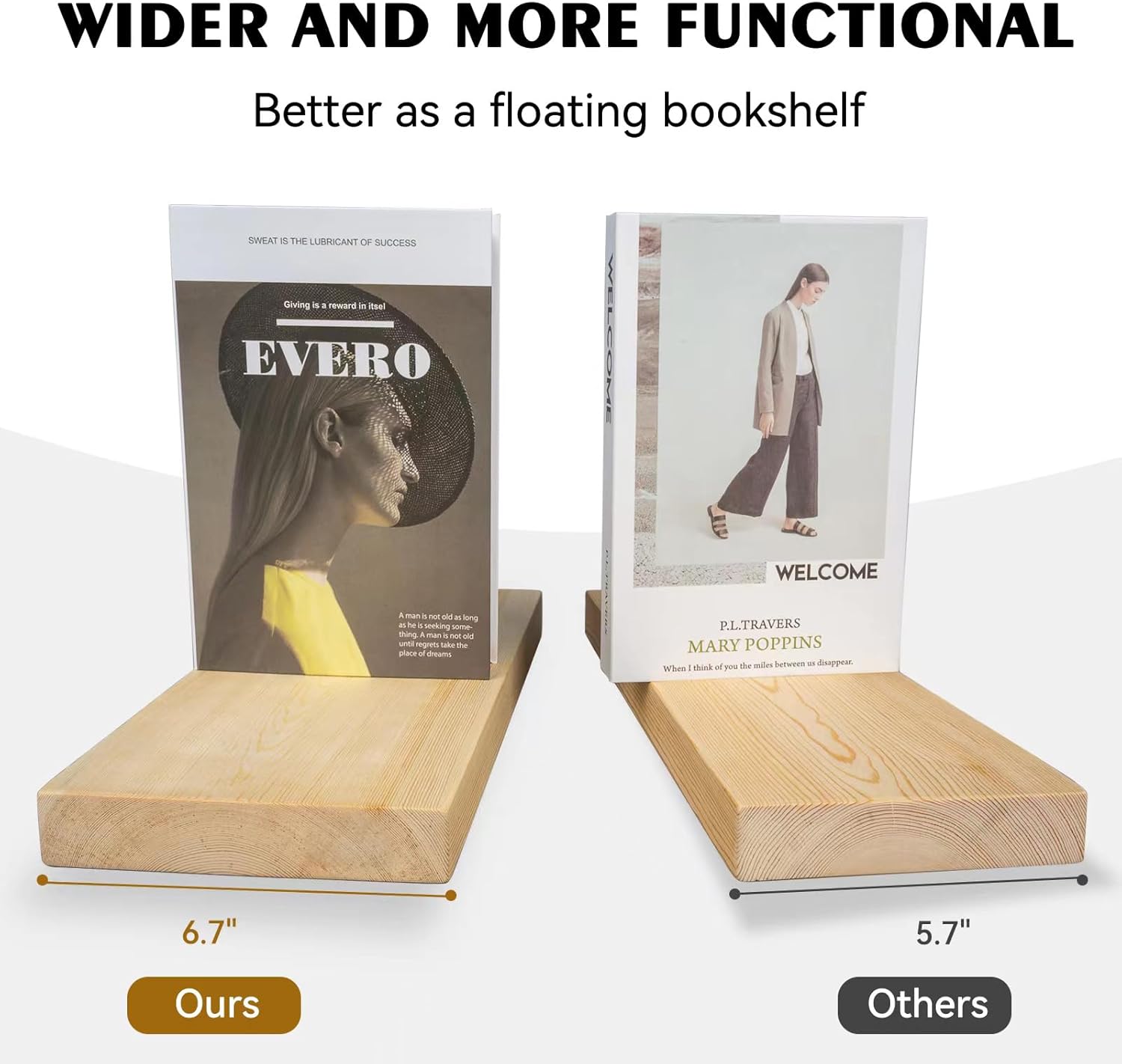 - PERFECT SIZE: Each floating shelf is 6.7" deep, which means they can hold most books without taking up too much space. It makes full use of empty walls and makes the room look bigger and neater.