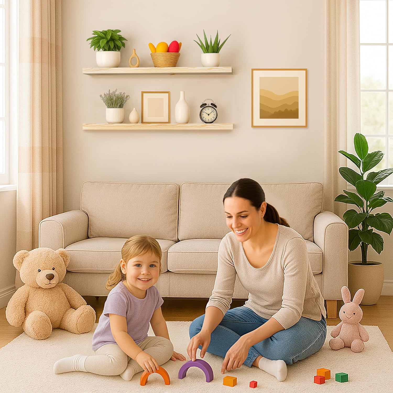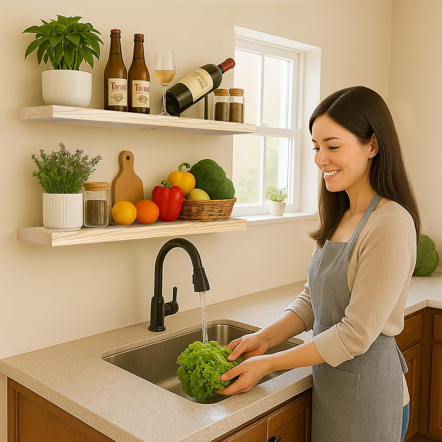 - MODERN RUSTIC LOOK - The floating shelves are made of natural pine, and the wood has different nodes and grains, so the color of each shelf may be slightly different, but equally stunning!