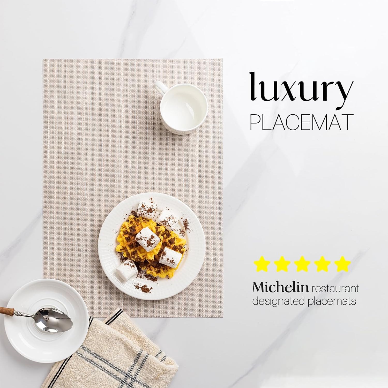 LEXMORE Placemats Set of 6 Vinyl/Plastic Woven Place Mats for Kitchen Table Indoor/Outdoor Washable Placemat Wipeable Dining Table Mats(Beige)