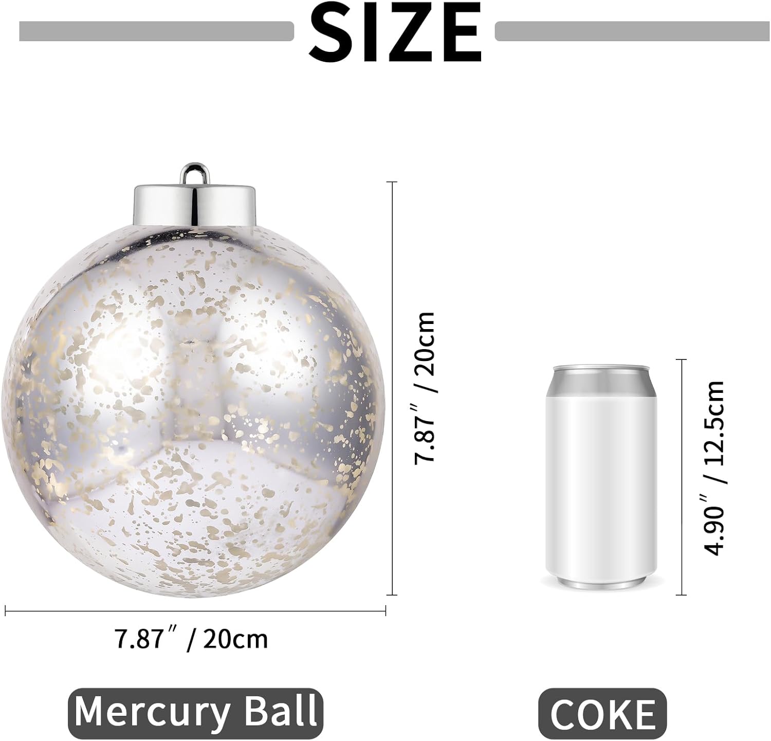 XmasExp Large Christmas Ball Ornaments,1pcs Silver Giant Shatterproof Plastic Hanging Mercury Xmas Ball Decorations Christmas Tree Ornaments (Silver, 8")