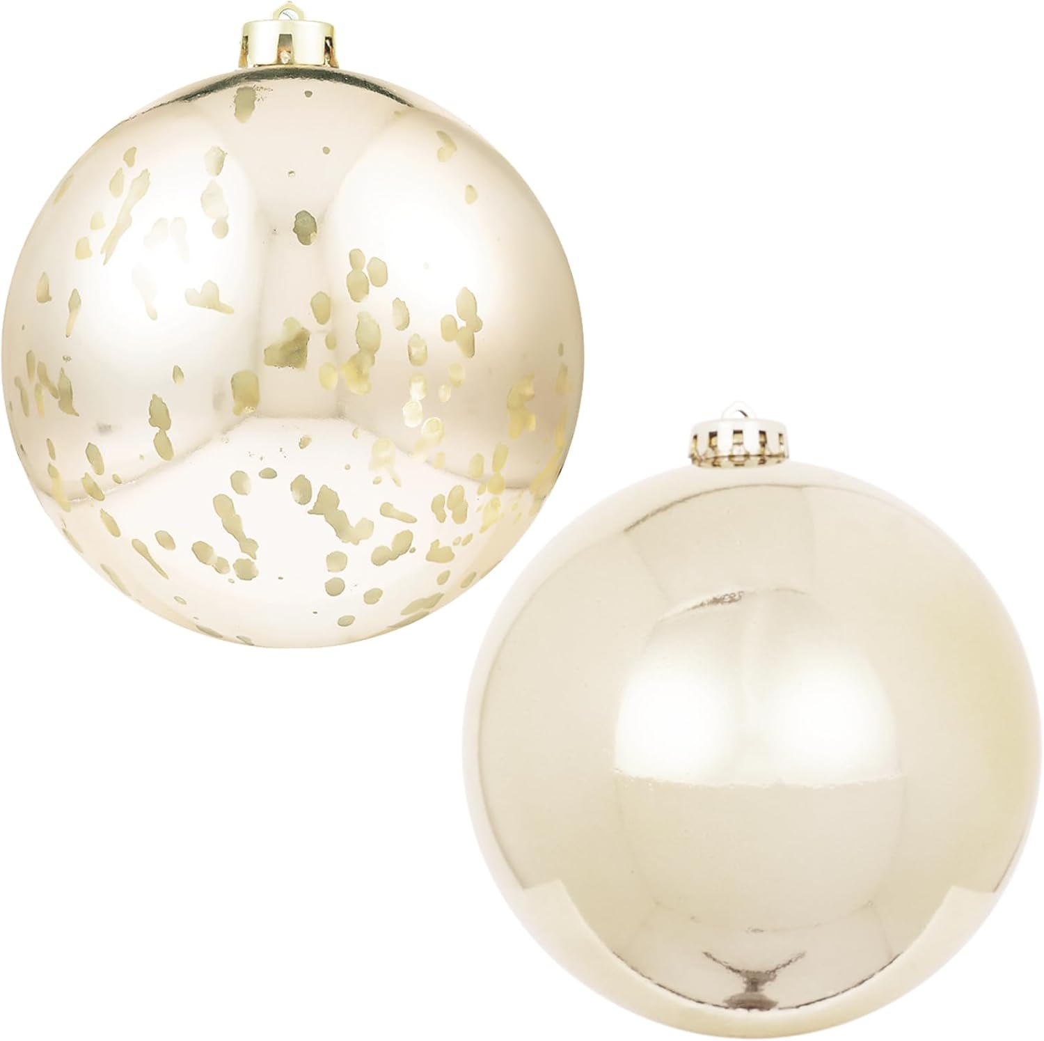 XmasExp Large Christmas Ball Ornaments,2pcs Champagne Giant Shatterproof Plastic Hanging Mercury Xmas Ball Decorations Christmas Tree Ornaments (Champagne Gold, 6")