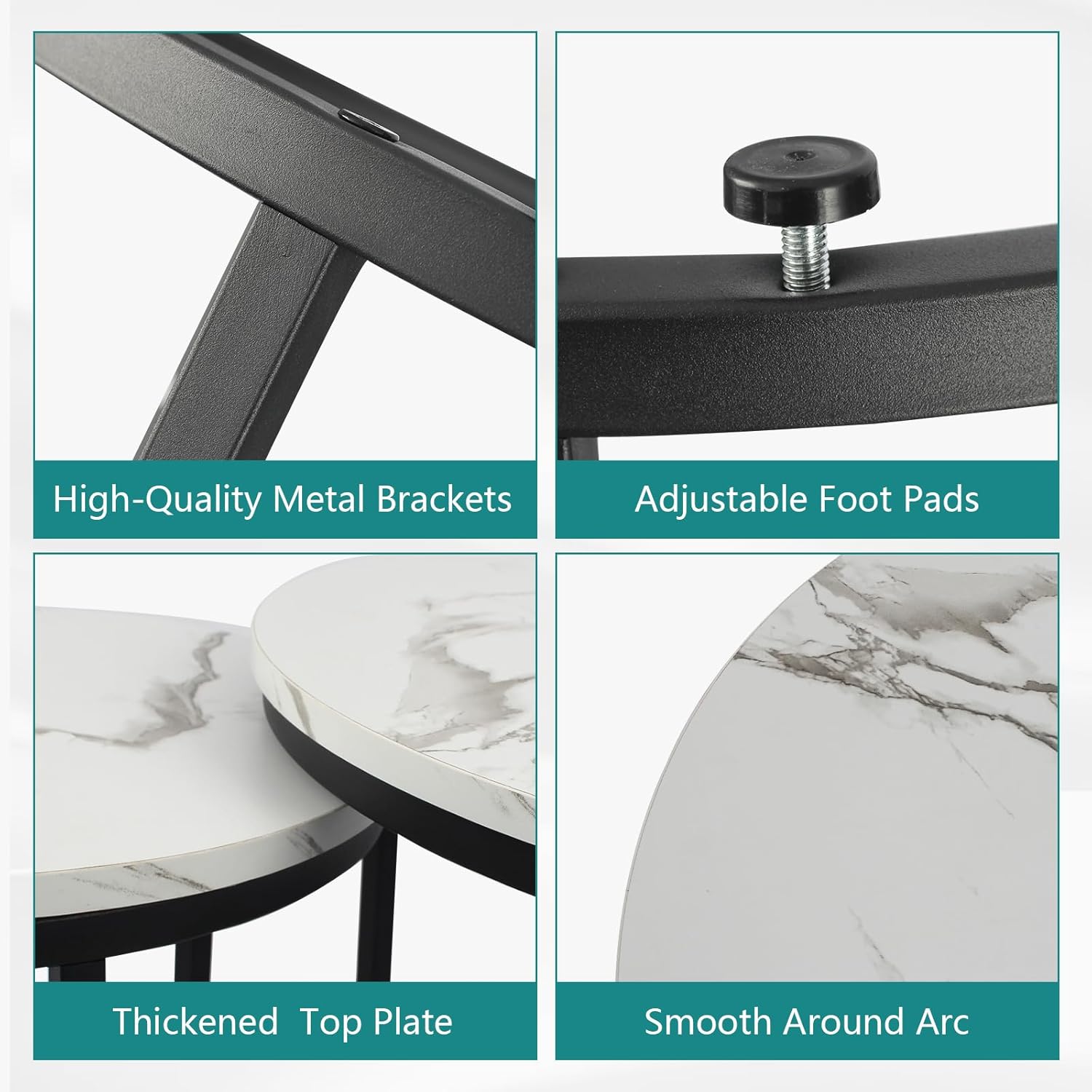- ăHigh-quality materialsăThe nesting coffee table is constructed of high quality thick particle board and strong durable steel legs that are long lasting and will not wobble. In addition, this living room coffee table has non-slip legs with adjustable feet to make the table stand firmly.