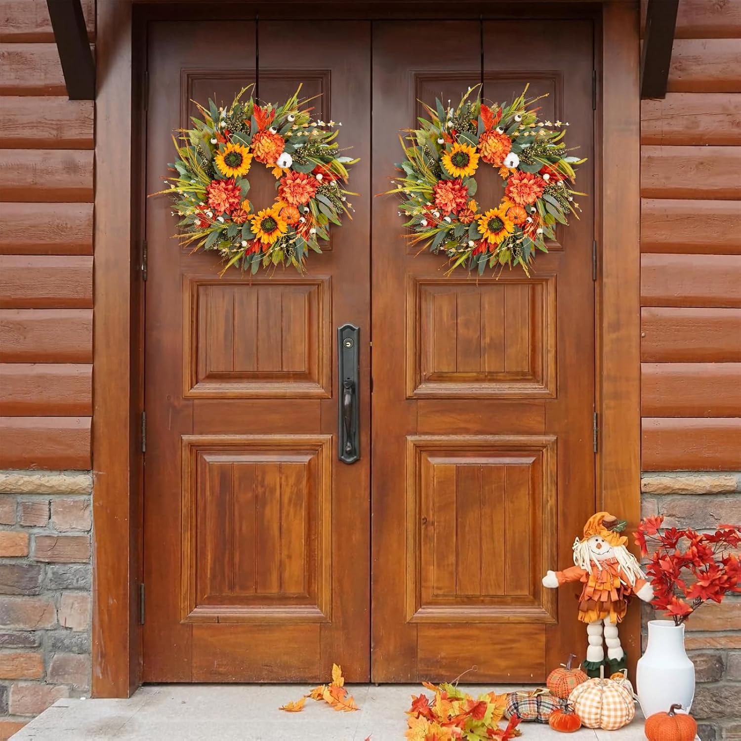 - Ready for Outdoor Display – Rain or Shine Built to last through all of fall’s moods, this outdoor wreath for front door is made from weather-resistant materials that hold up to sun exposure and light rain. Hang it on your porch, patio, or entry gate — it’s designed to look beautiful indoors or out.