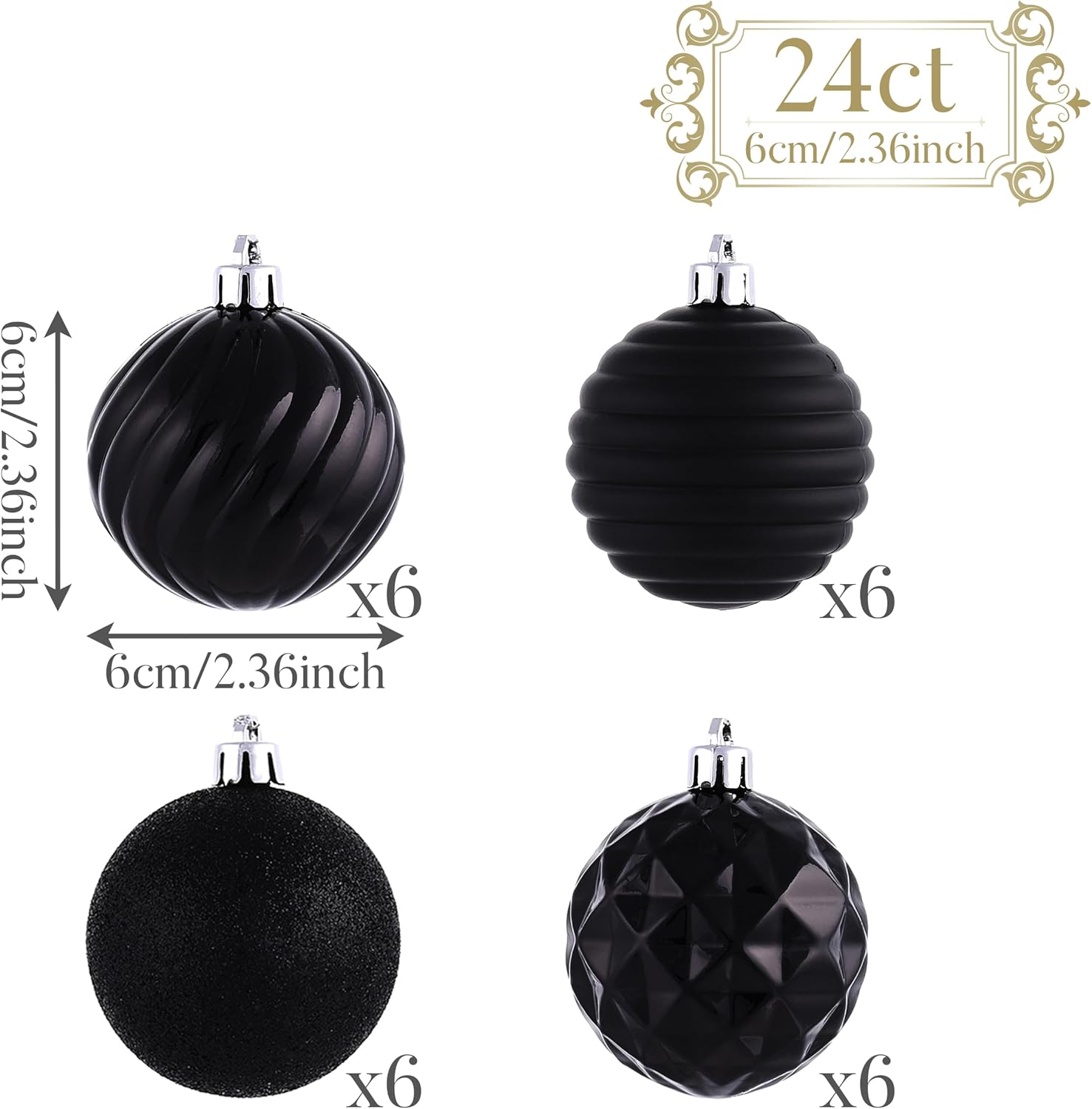 Valery Madelyn Christmas Ornaments Tree Decorations Set for Fall Halloween, 24ct Black Shatterproof Ball Ornaments, 2.36" Hanging Ornament Bulk for Xmas Holiday Party Decor