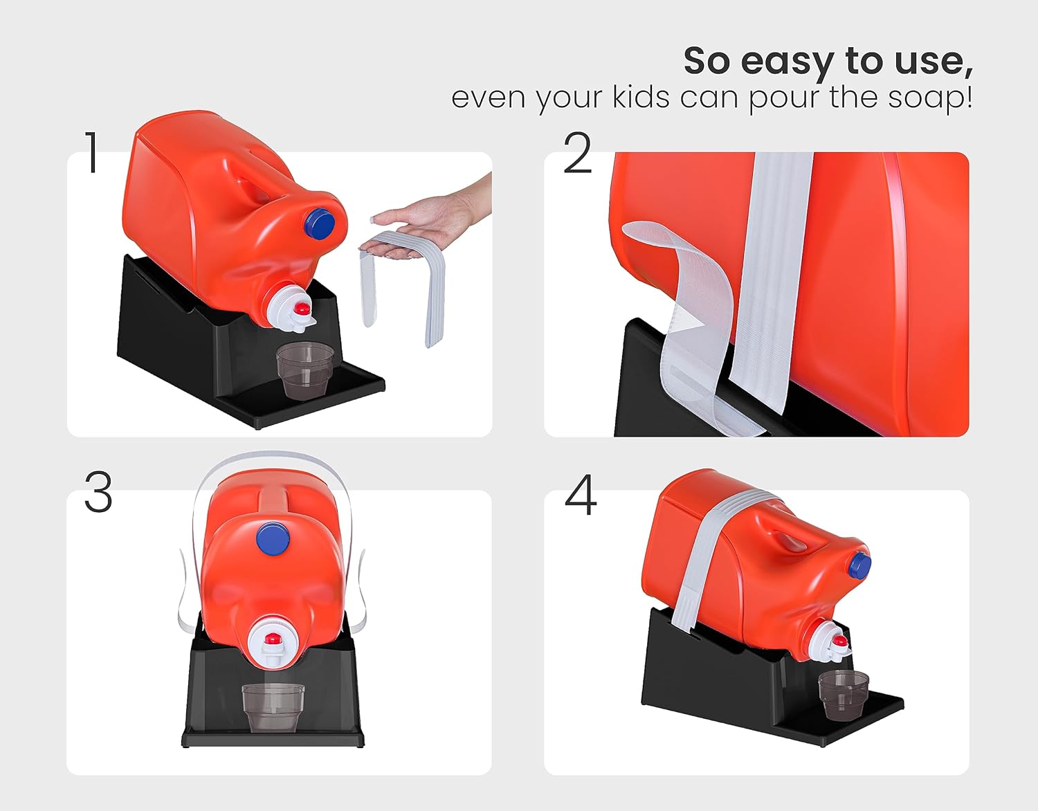 - [Versatile Fit:] The liquid laundry detergent holder station's optimal size (7.9"L x 12.2"W x 5.5"H) accommodates various bottle sizes, providing a perfect fit for most detergent containers without taking up too much space. (Laundry Soap, Cup, and Bottles NOT Included)