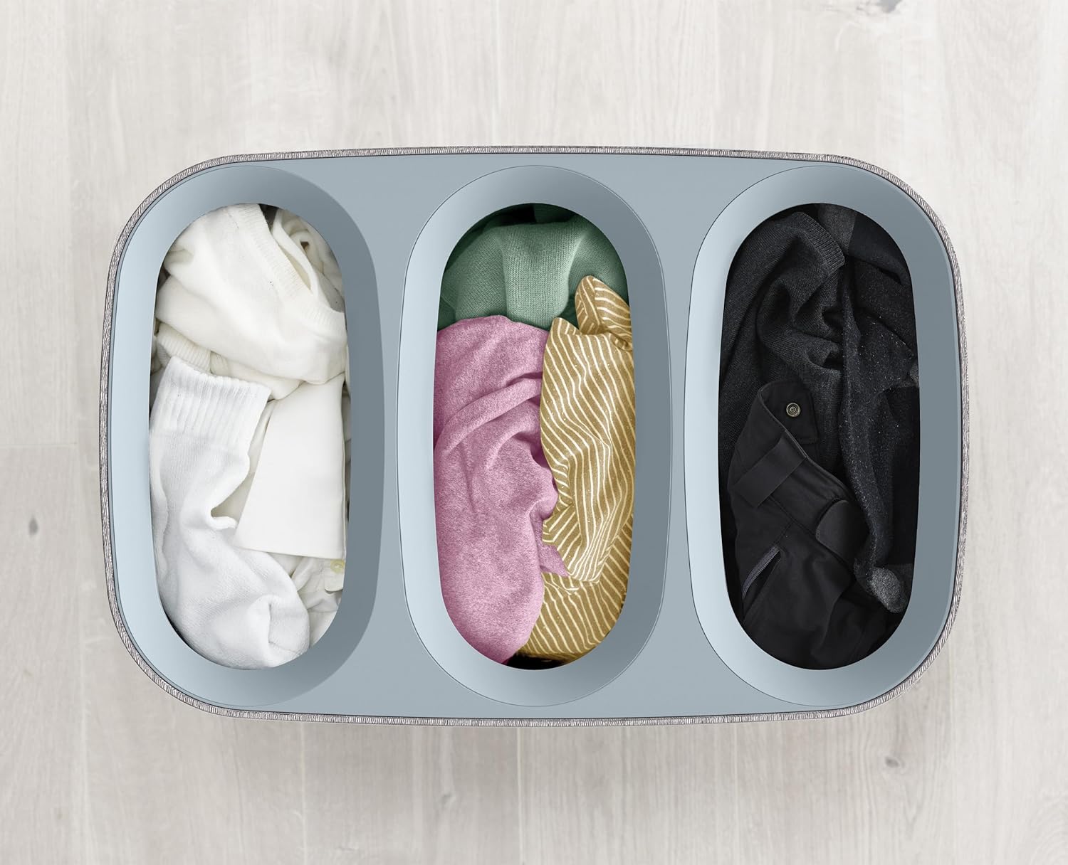 Joseph Joseph Tota Trio 90 liter/23.8 gallon Laundry Hamper Separation Basket with lid, 3 Removable Washing Bags with Handles- Gray