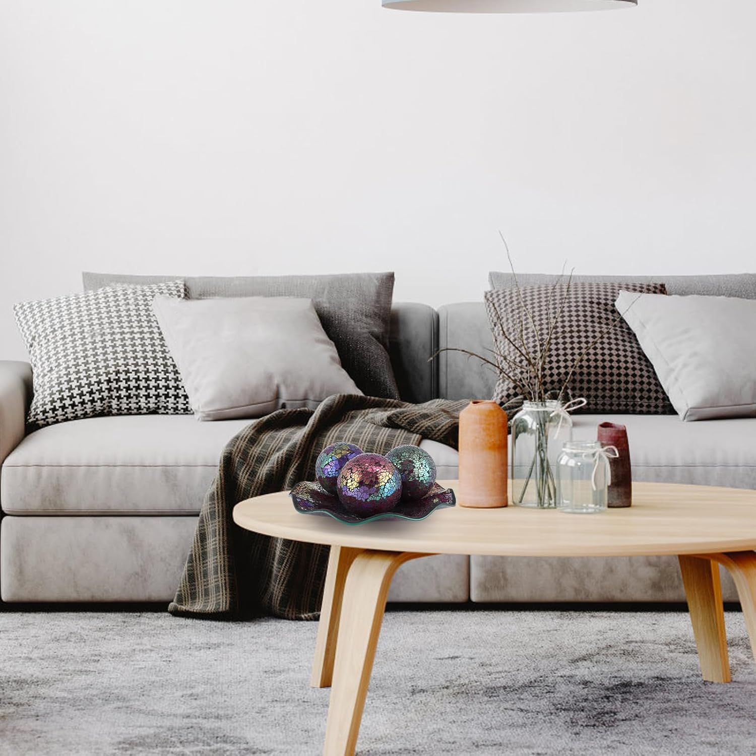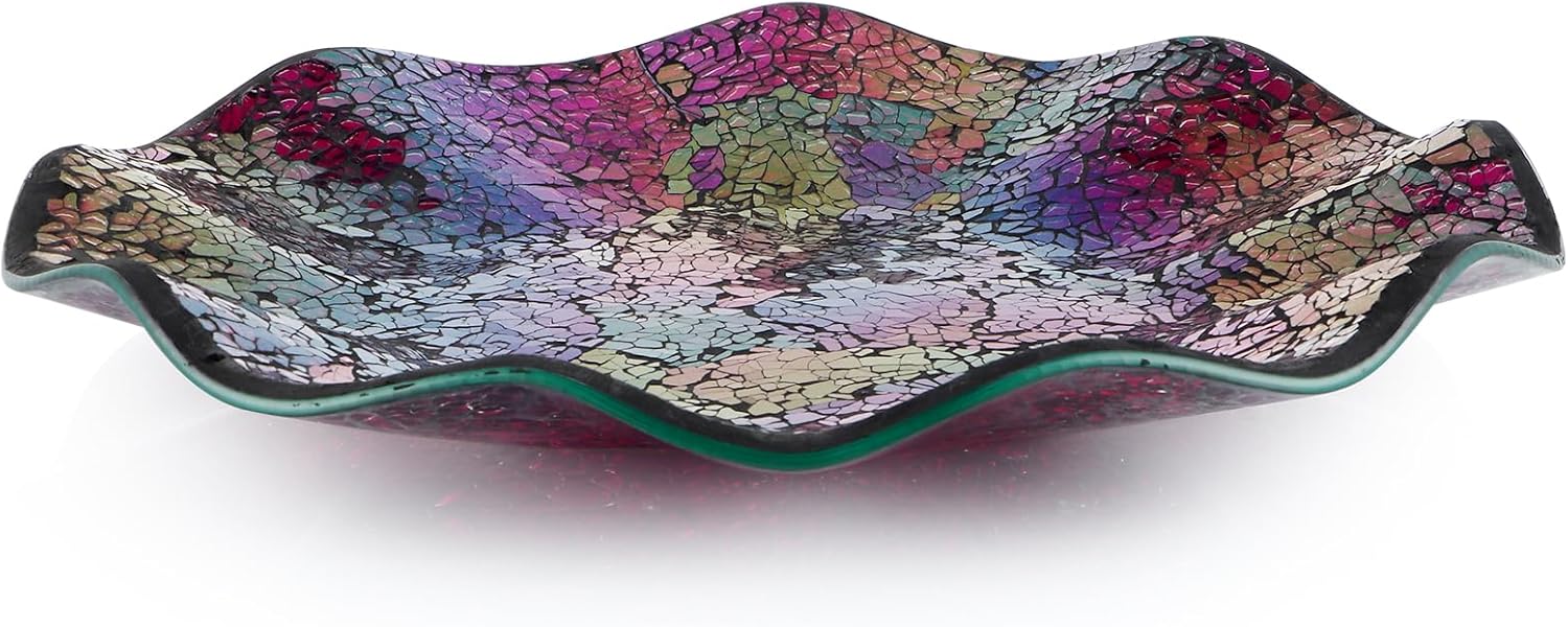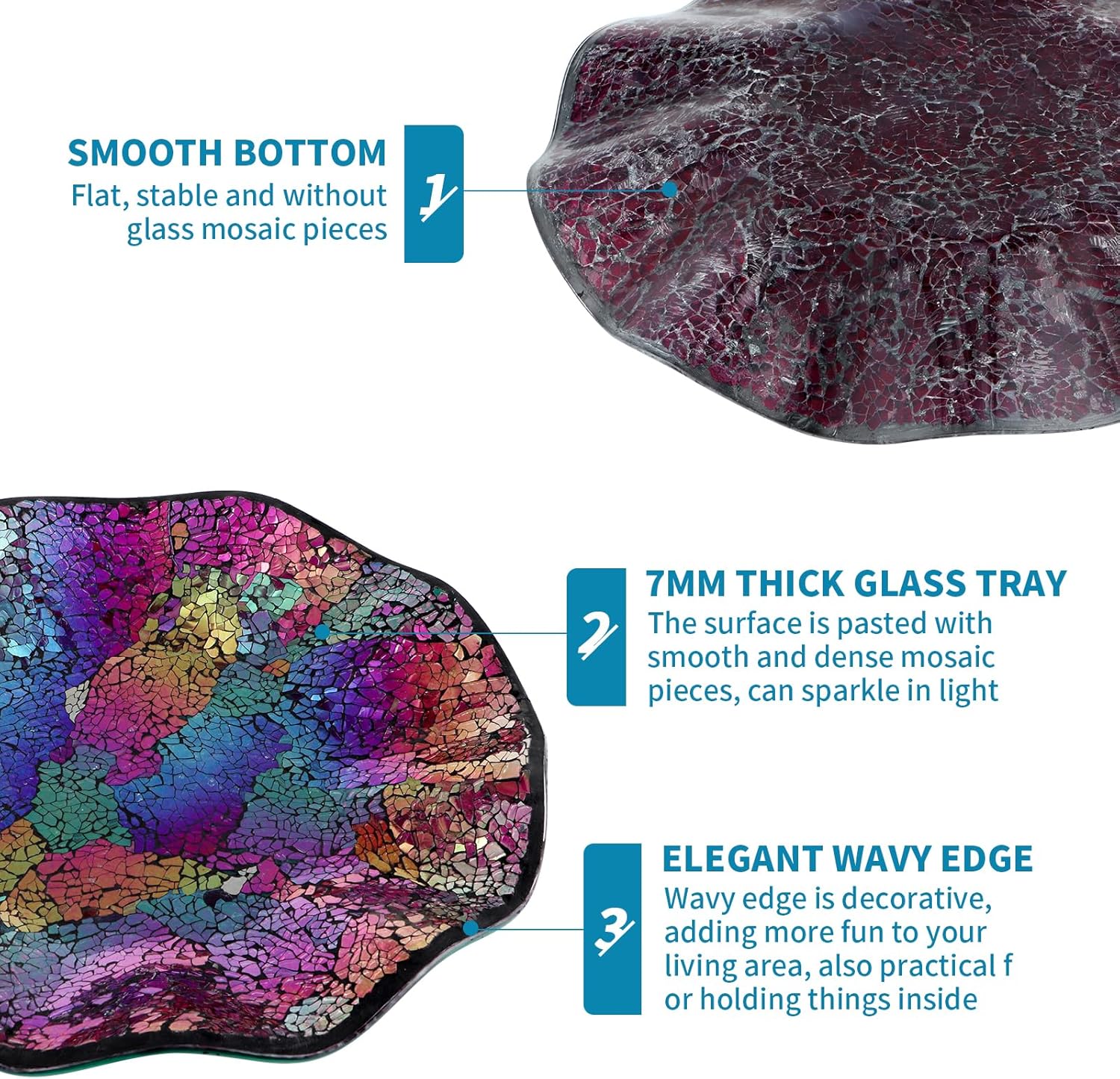 MDLUU Mosaic Centerpiece Tray, 11.6" Decorative Glass Plate, Home Decor Glass Bowl for Dining Room Table, Coffee Table, Gift (Multicolored Purple)