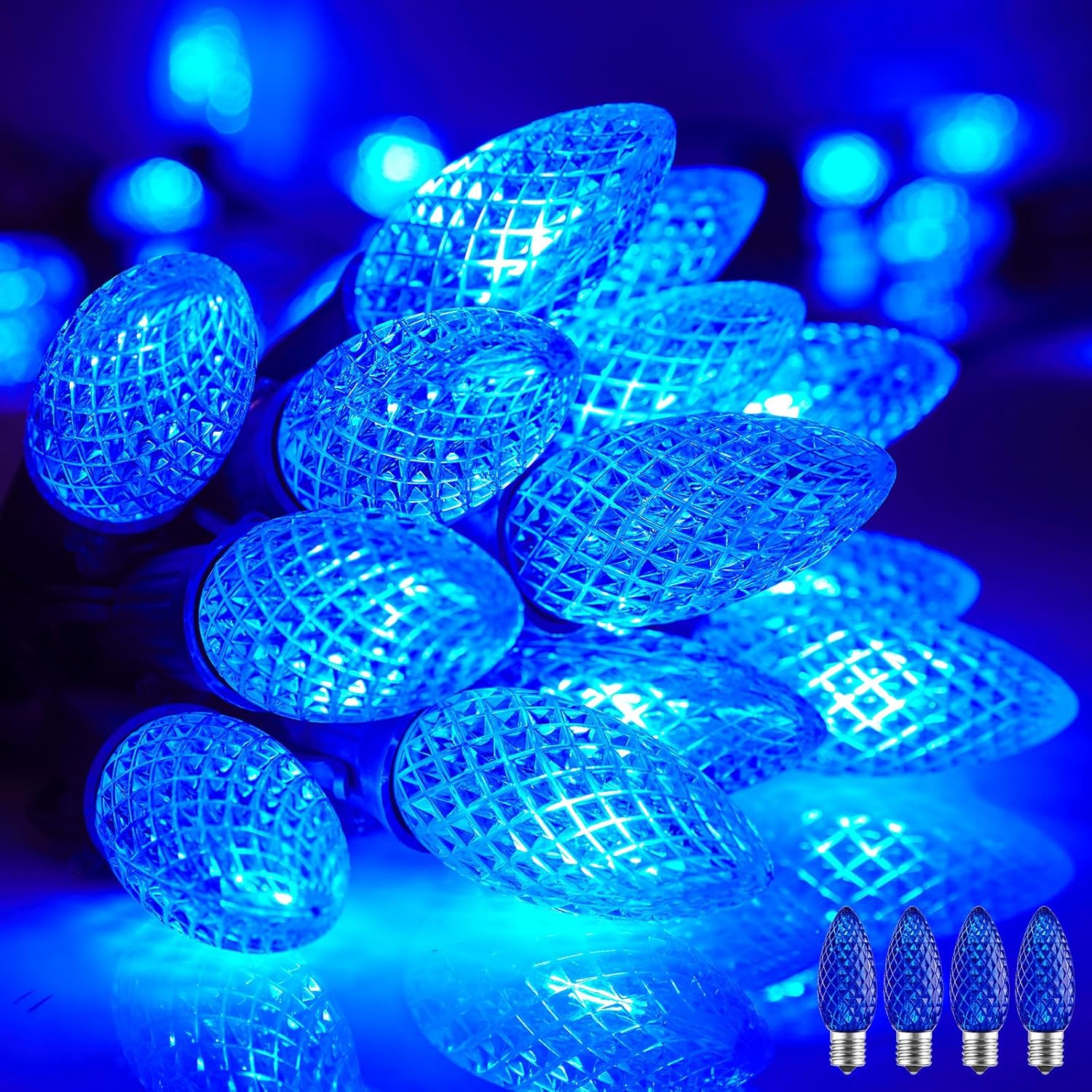 - Connectable and Dimmable for Accent Lighting: Spacing is 12” between c9 bulbs, with 6” of lead on either end. Up to eight (4) strands can be connected end to end for a total of 400 feet, greatly expanding application possibilities, and lifespans of each strand are rated at 15,000 hours. These LED lights emit a bright, warm white light and use parallel wiring; if one light goes out, the rest will stay on. They are also PWM dimmer compatible