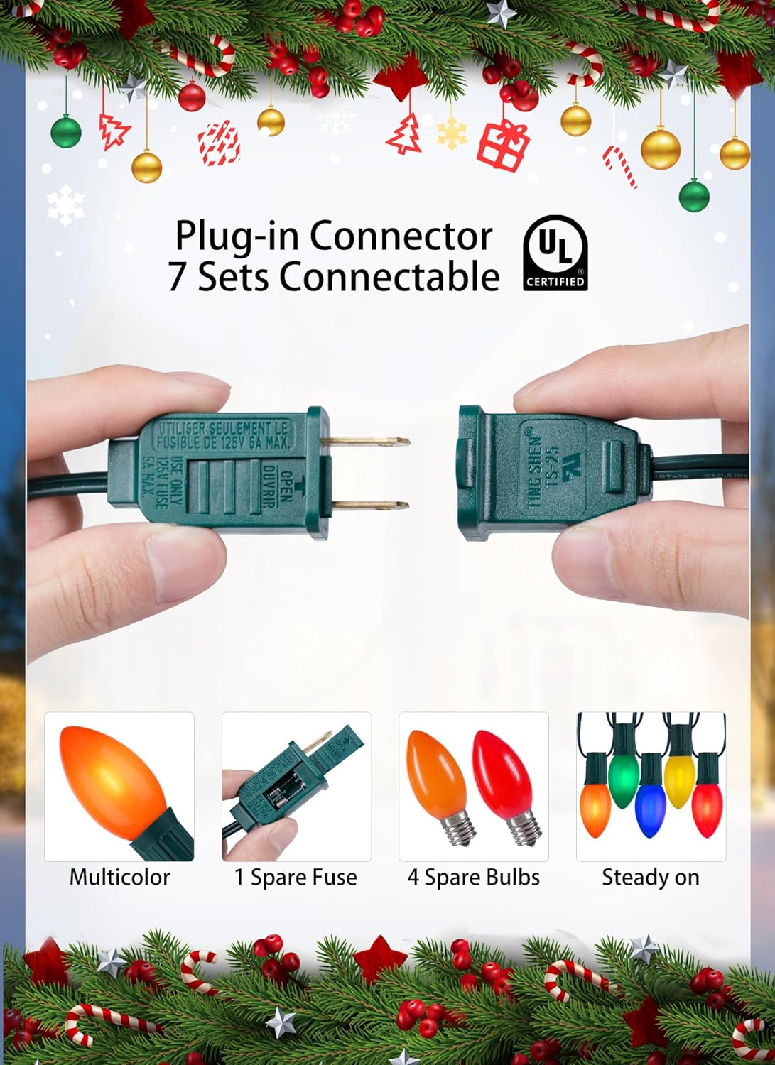 - Special Feature : UL Certified LED C9 String Lights, Waterproof, Connectable, Christmas Tree Decorations