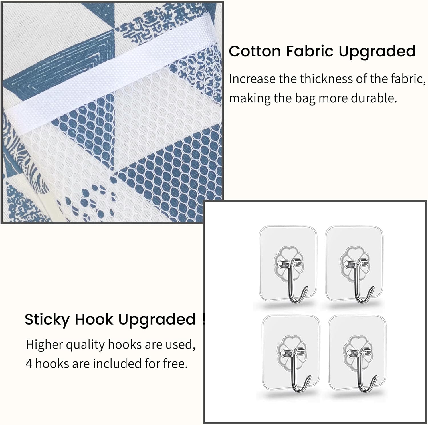 - ăUpgraded MaterialăWe had upgraded the Cotton Linen Fabric and sticky hook quality, making the wall storage bag more durable to hang. Its inner with waterproof type coating, hanging pockets can be used to store items in the bathroom.