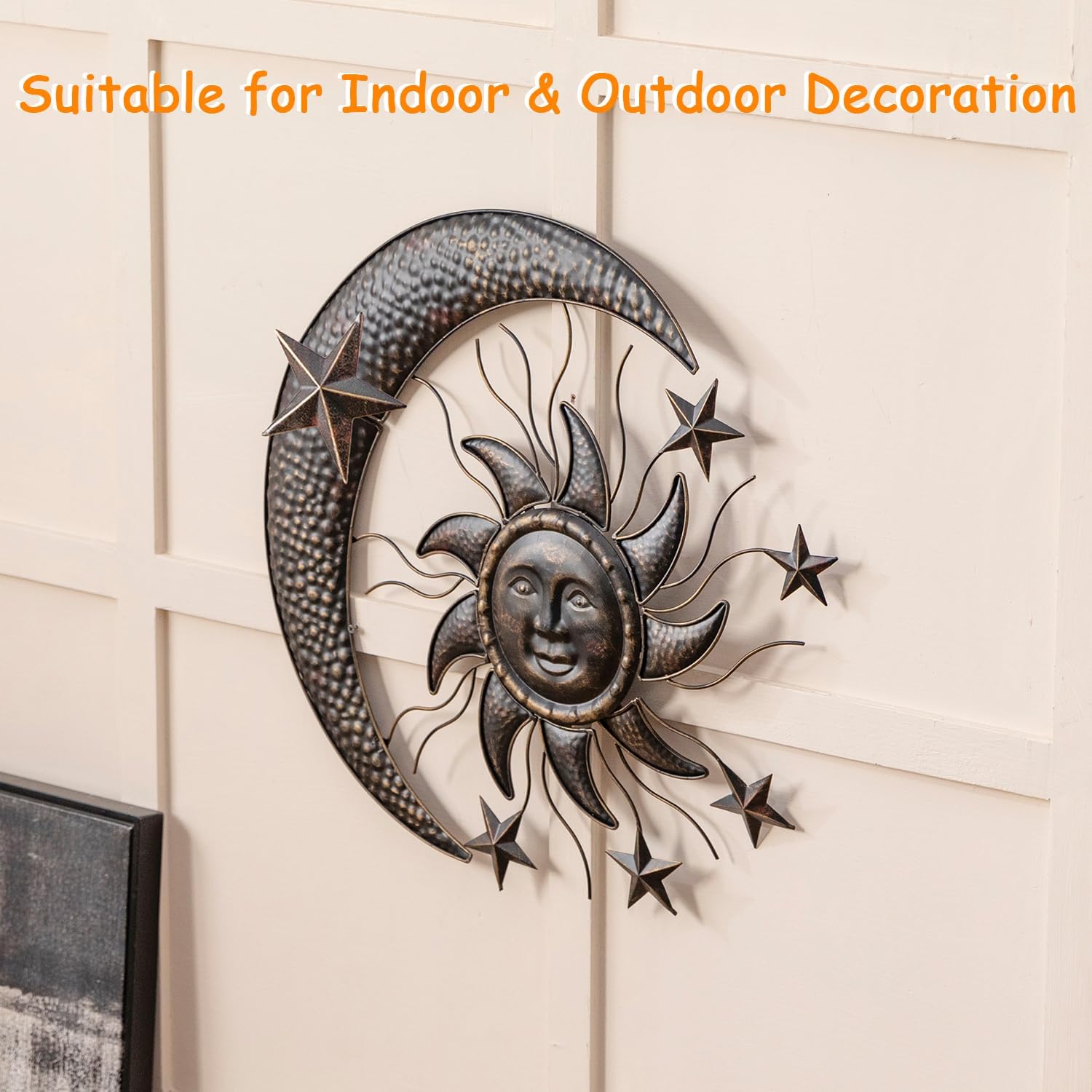 TICKCACY 27β Metal Sun Wall Decor, Vintage Sun Moon Stars Wall Hanging Decoration, Moon and Stars Wall Art Sculpture for Indoor Outdoor Living Room Bedroom Garden Yard Patio Fence
