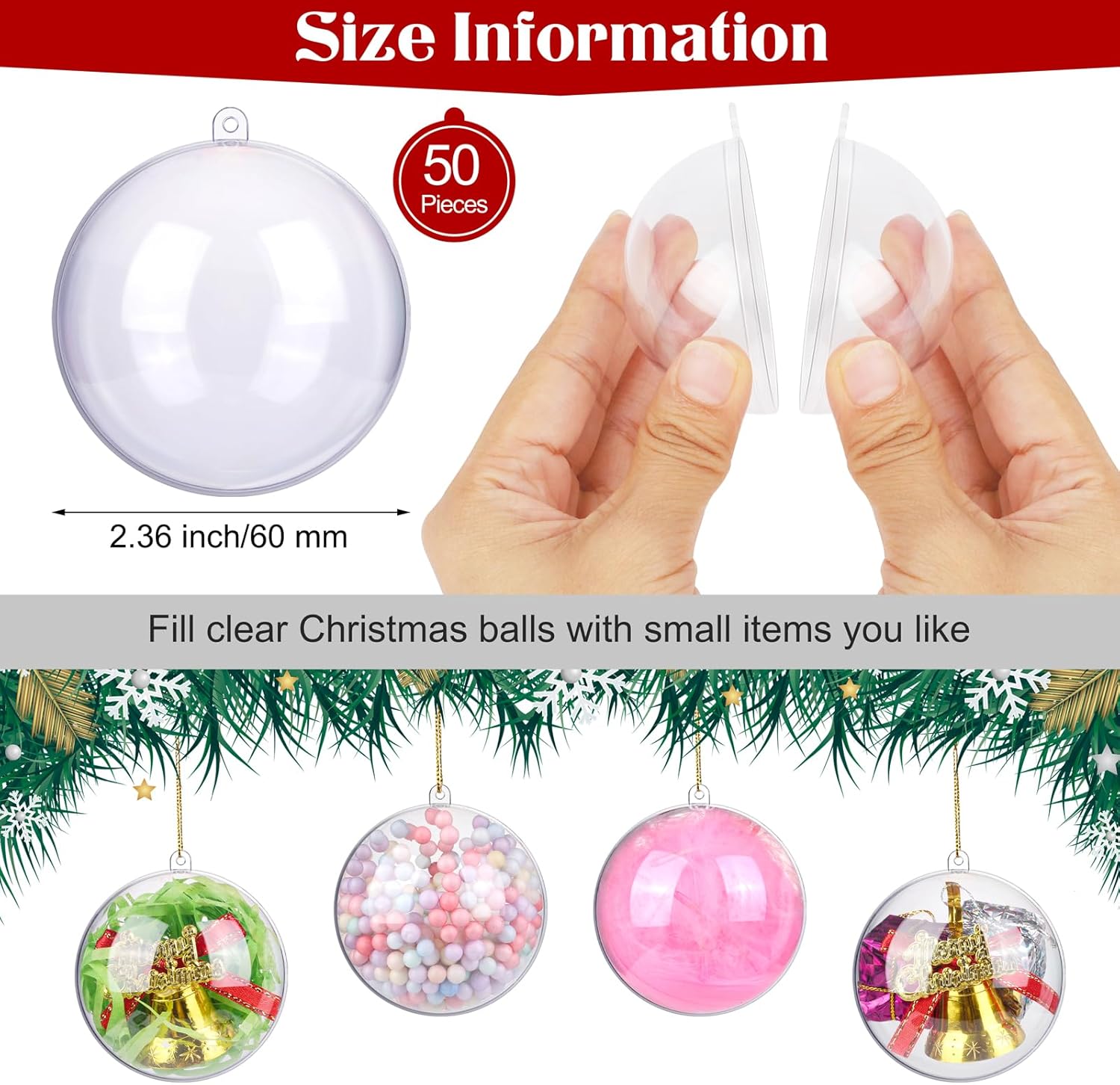 - Abundant quantity: you will receive 50 pieces of Christmas clear plastic fillable ball ornaments with a generous quantity, our packaging includes a sturdy paper box to allow these DIY transparent balls to be protected during delivery and be provided convenient storage
