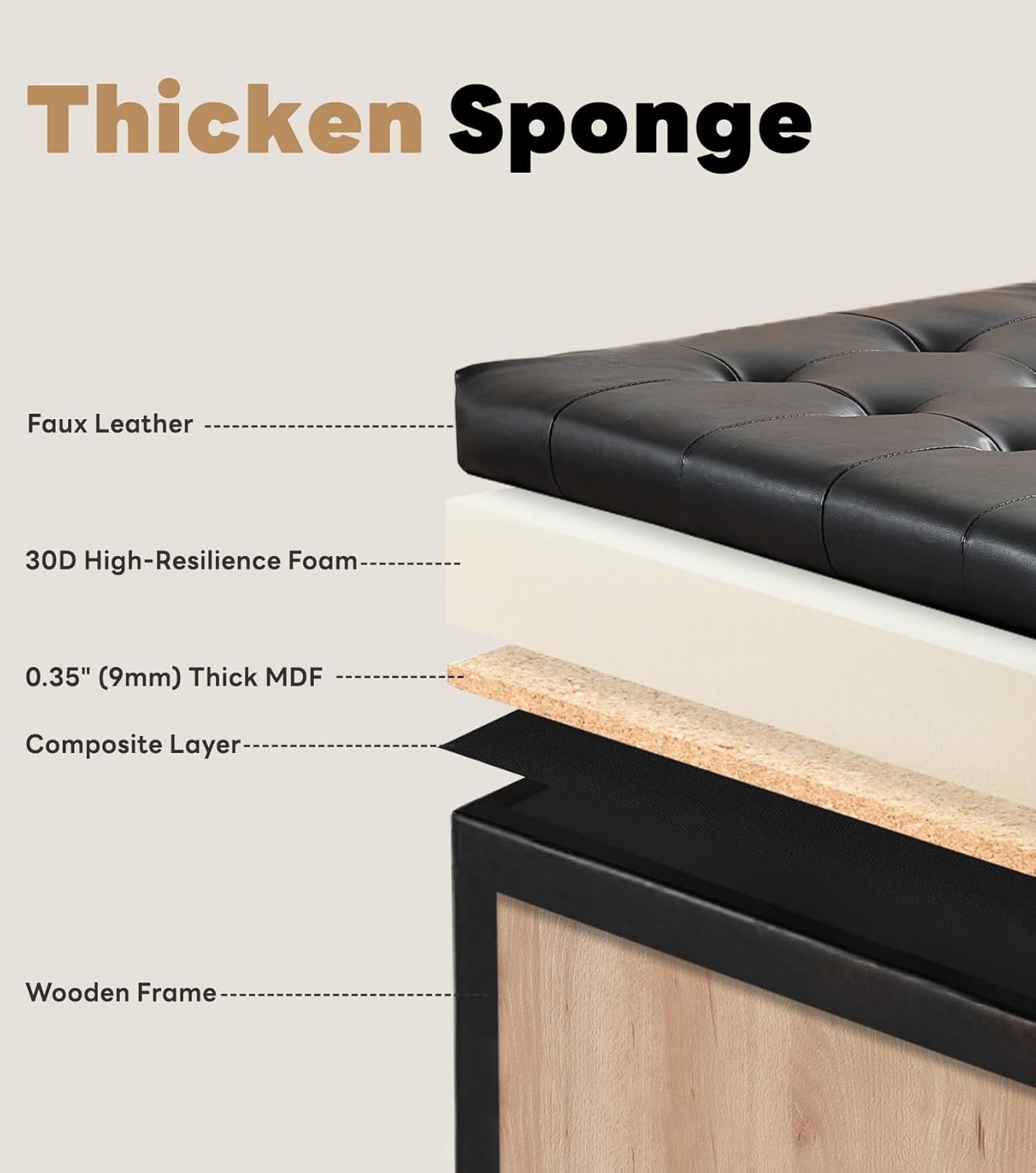 - STABLE AND DURABLE: Our oversized ottoman is made with a sturdy solid wood frame and durable wood legs, designed for long and lasting use. Durable solid wood legs can withstand a weight of 300 pounds. The soft cushion on the lid with a high-density sponge adds support without sacrificing any comfort, so your tea tray can be placed on it steadily.