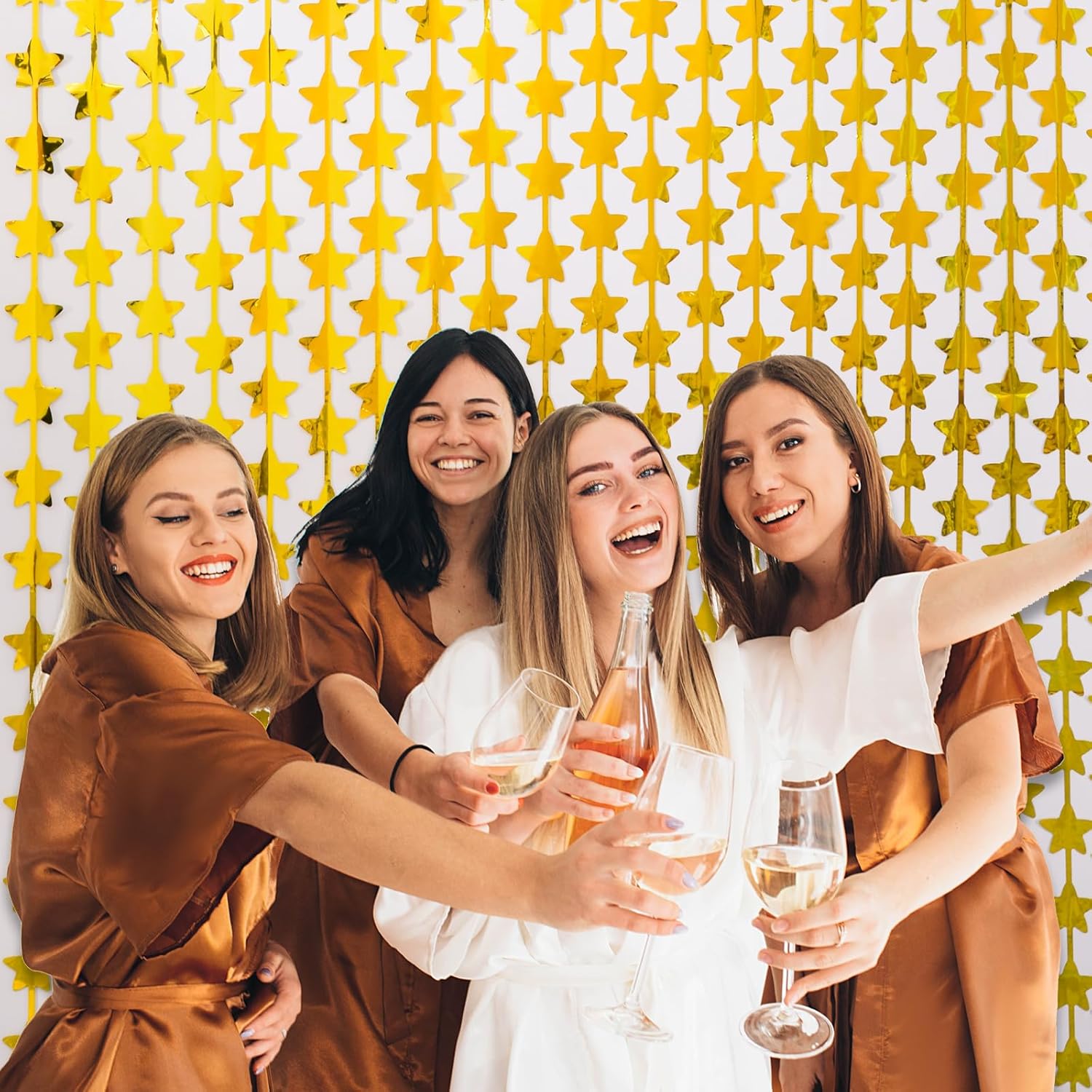 - 🌙【GOLD PARTY DECORATIONS】:This beautiful stars foil backdrop are wonderful finishing touch for any theme party such as bachelorette party, bridal shower, engagement, wedding,New year party, anniversary, baby shower, birthday party, housewarming party, graduation,Movie Star show decorations, Christmas decorations, you can also use it on any place you like.