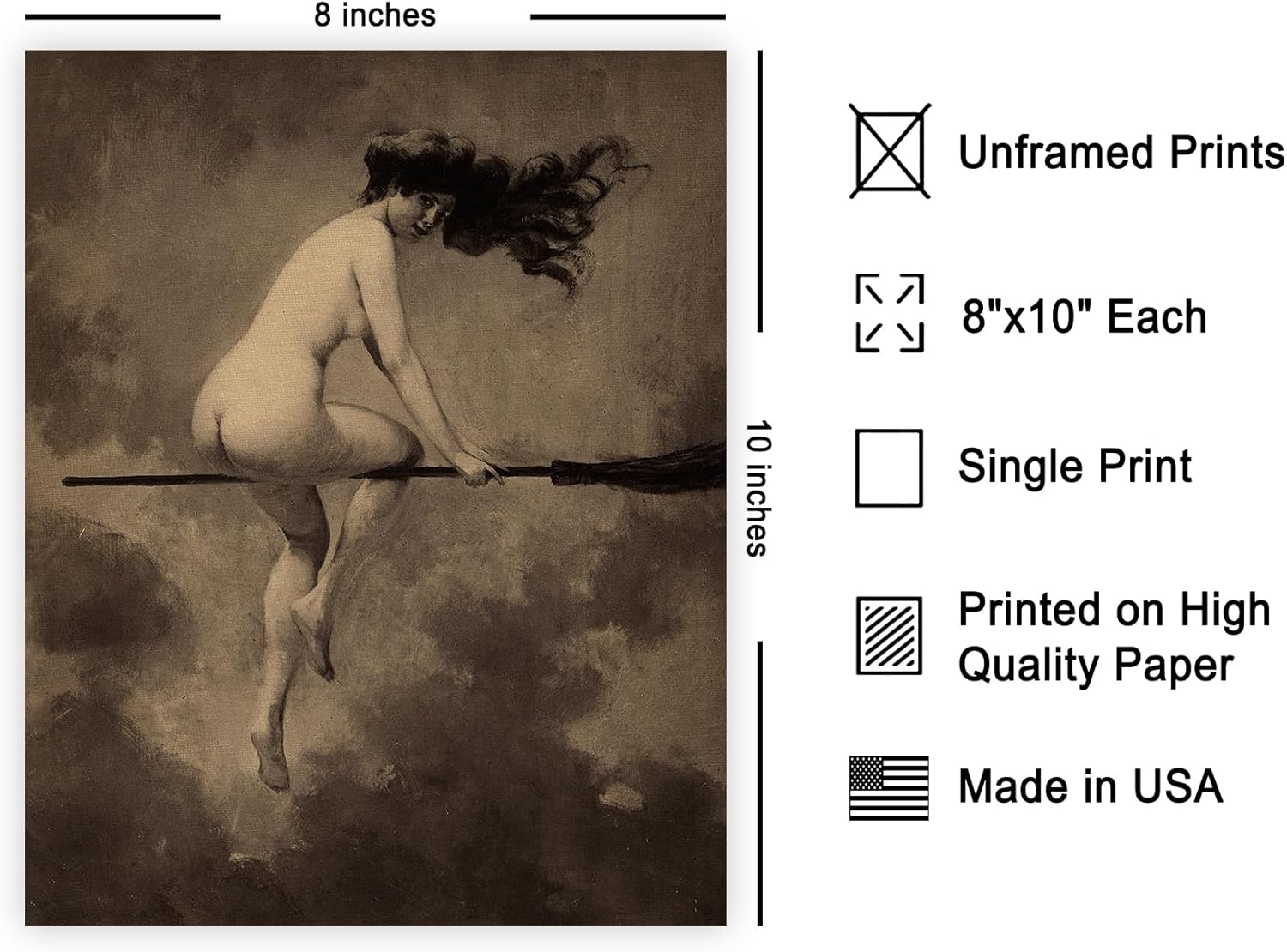 Poster Master Vintage Departure for the Sabbath Poster - Retro Naked Witch Print - Halloween Art - Gift for Men & Women - Gothic Wall Decor for Living Room, Bedroom or Dorm - 8x10 UNFRAMED Wall Art