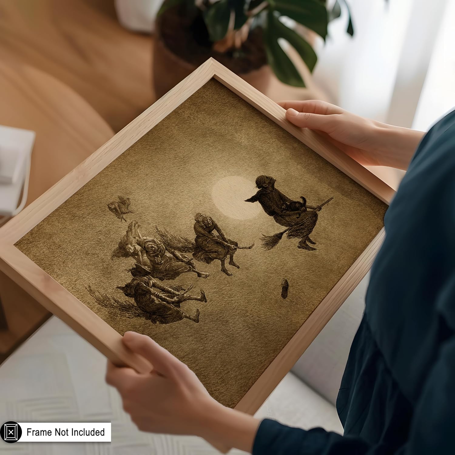 Poster Master Vintage Witches Ride Poster - Retro Flying Witches Print - Halloween Art - Pagan Art - Gift for Men & Women - Gothic Wall Decor for Living Room, Bedroom or Dorm - 8x10 UNFRAMED Wall Art