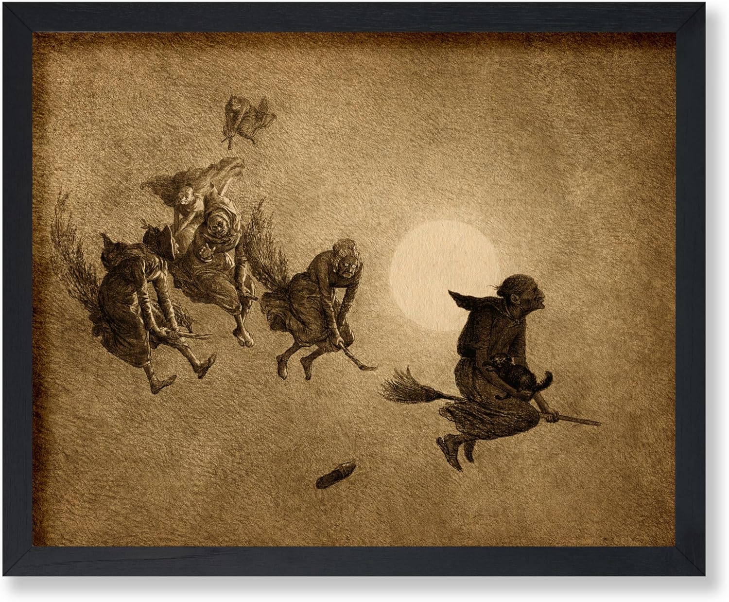 Poster Master Vintage Witches Ride Poster - Retro Flying Witches Print - Halloween Art - Pagan Art - Gift for Men & Women - Gothic Wall Decor for Living Room, Bedroom or Dorm - 16x20 UNFRAMED Wall Art