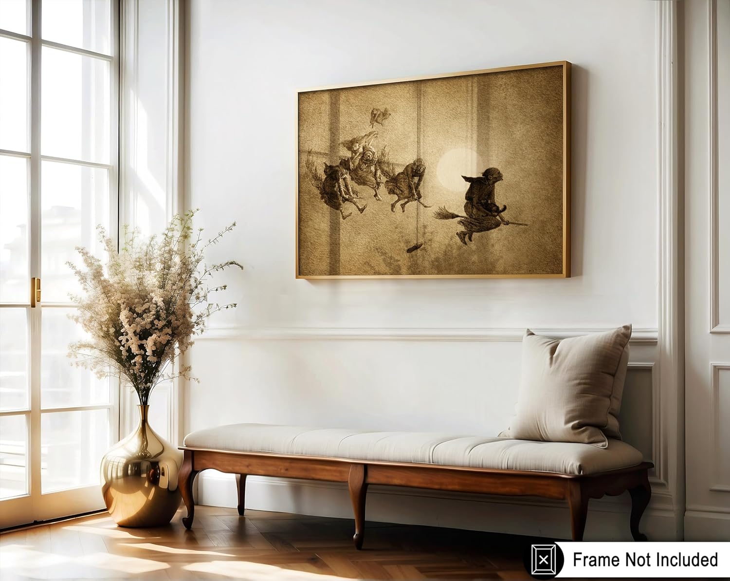 Poster Master Vintage Witches Ride Poster - Retro Flying Witches Print - Halloween Art - Pagan Art - Gift for Men & Women - Gothic Wall Decor for Living Room, Bedroom or Dorm - 11x14 UNFRAMED Wall Art