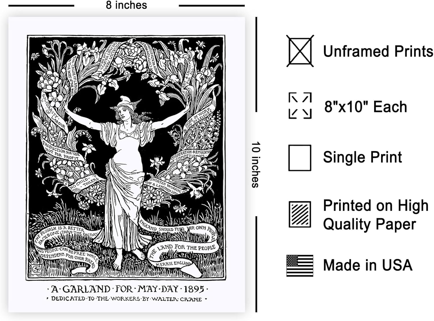 Poster Master Vintage Walter Crane Poster - Retro A Garland for May Day Print - Socialist Art - Gift for Him, Her, Men, Women - Wall Decor for Home, Office, Living Room - 8x10 UNFRAMED Wall Art