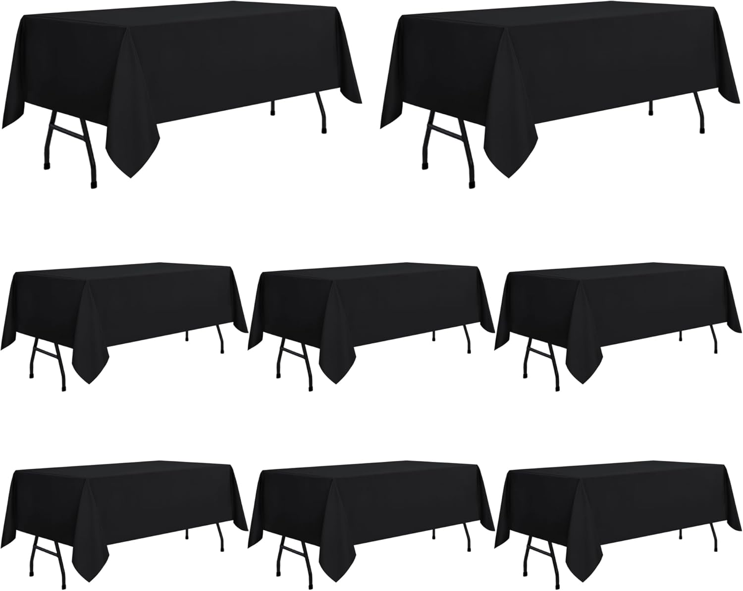 sancua 8 Pack Black Tablecloth 60 x 84 Inch, Rectangle Table Cloth for 4ft Tables - Stain and Wrinkle Resistant Washable Polyester Table Cover for Dining Wedding Banquet Party Buffet Restaurant