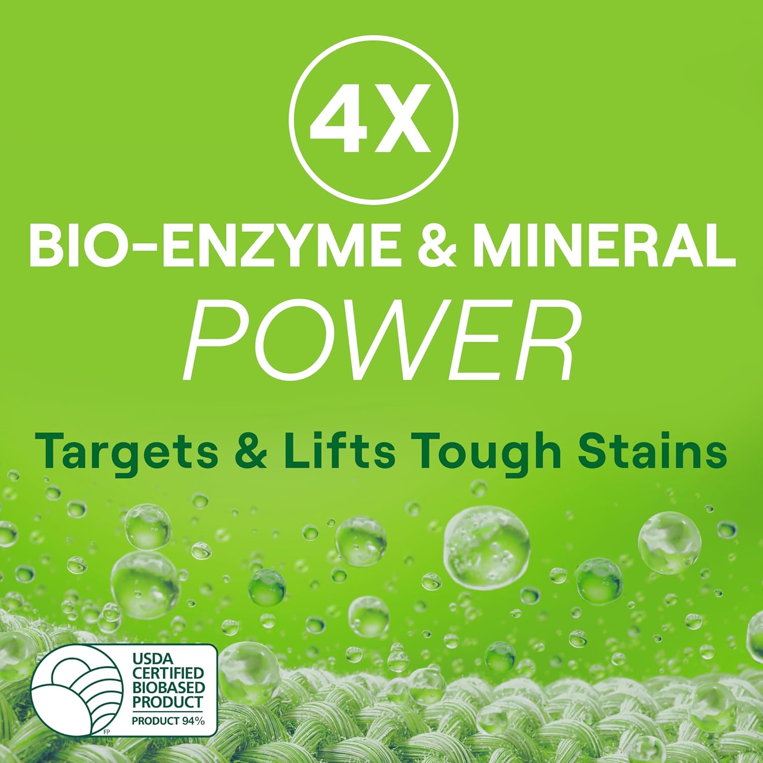 - Uses the effective power of 4x bio-enzymes, plus minerals, to fight tough dirt, stains, and odors
