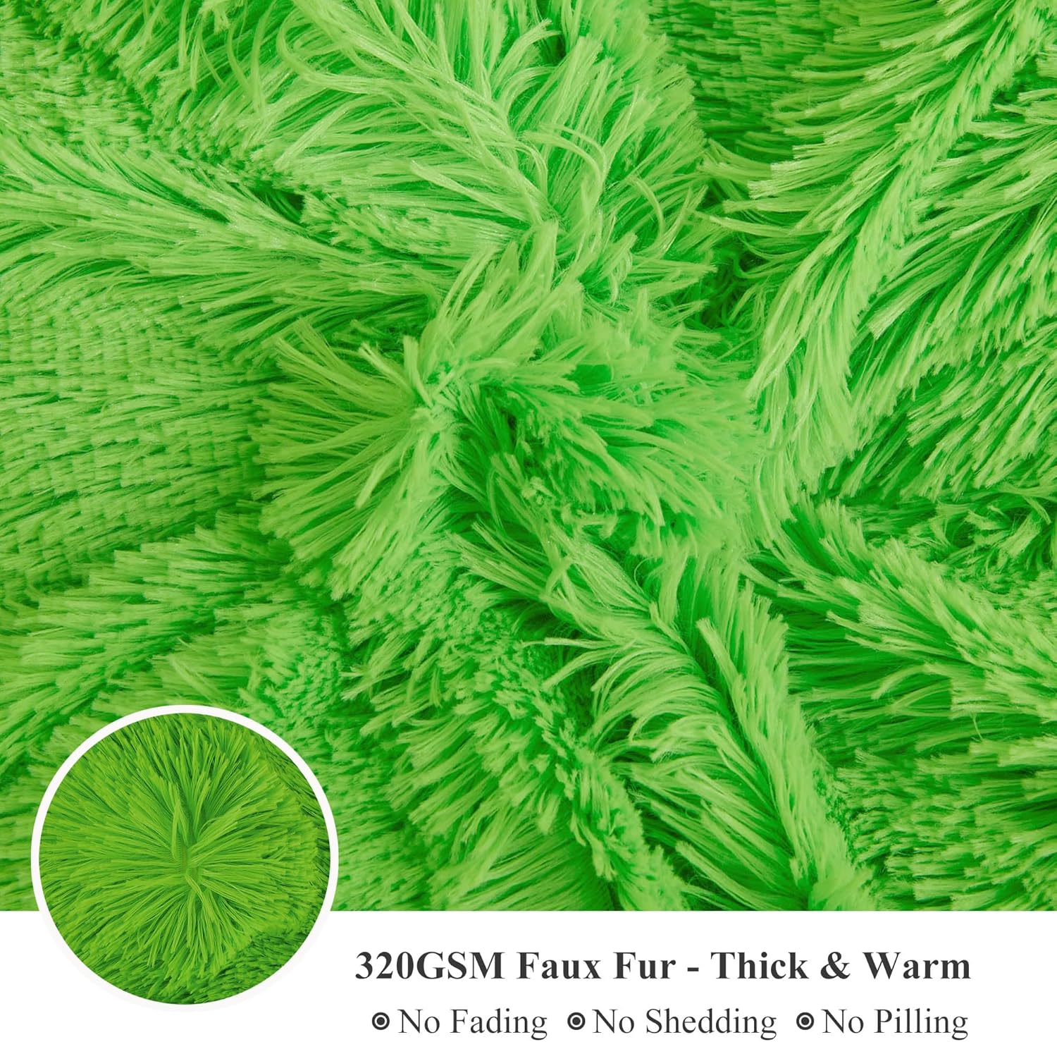 XeGe Luxury Faux Fur Throw, Green Soft 50x60 Fluffy Blanket, Shaggy Plush Decorative Couch Throw, Cute Furry Fuzzy Bed Office Lap Blanket for Bedroom Living Room, Lime Green