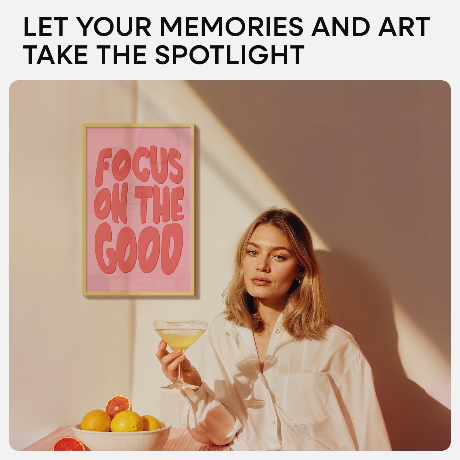 - SUBTLE GLOW. SIMPLE FORM. This frame’s polished champagne gold hue adds just enough shine to catch the eye. Clean lines and a minimalist build keep the look modern and uncluttered.