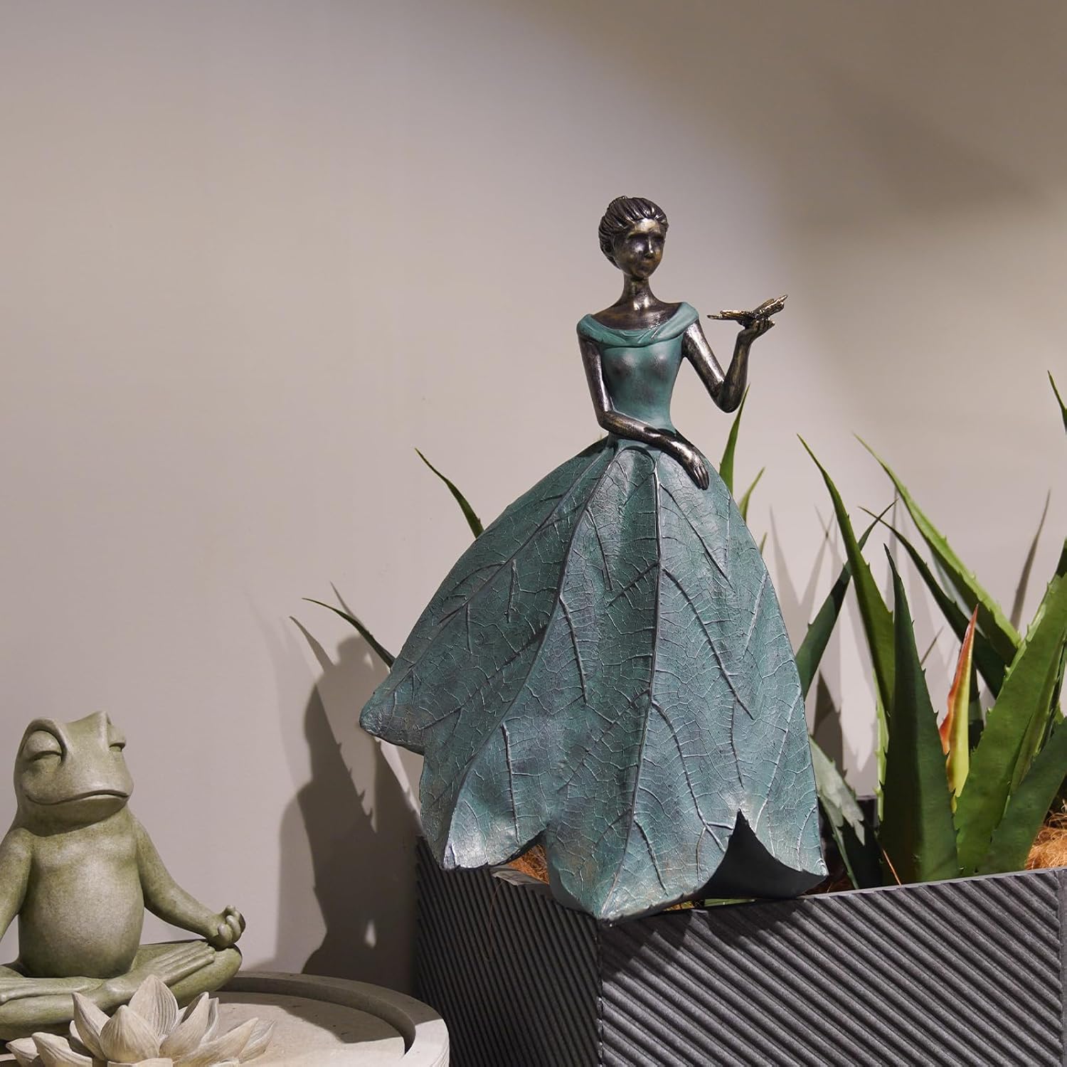 - Fairy Statue: Do you think your garden is too drab? Our leaf Angel girl statue with dragonfly product is originally designed by the designer. The skirt is in the shape of a leaf with the delicate texture of a leaf, which looks very artistic. It can add a different aesthetic feeling to your room or garden.