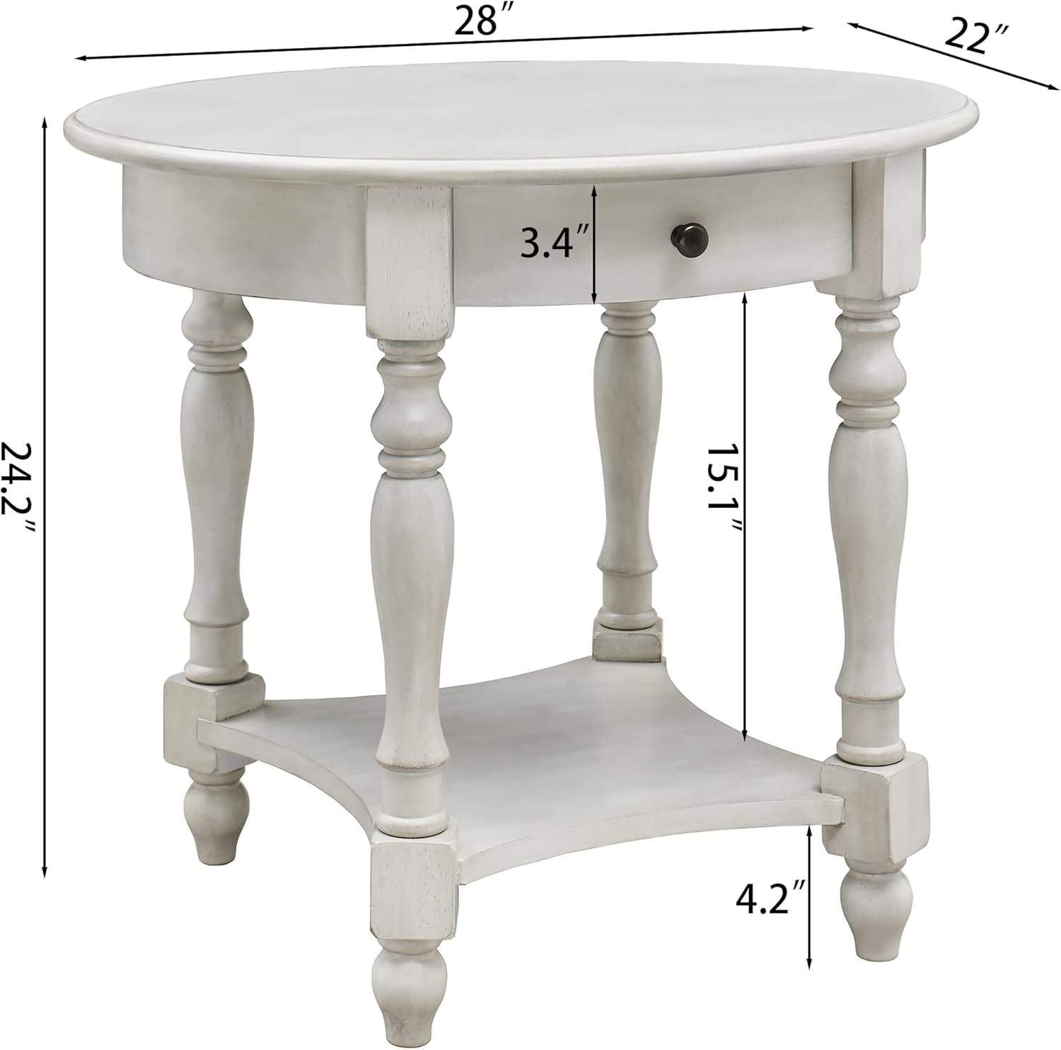 - Elegant Vintage Charm End Table: The oval end table has a sculptural form that impresses with its stately, grandeur appeal. Elegant Vintage Style adds noble and elegant temperament.It is not an end table a home decoration artwork.The sofa side table is made of Rubber wood and Birch sheet,wrapped by antique white finished.