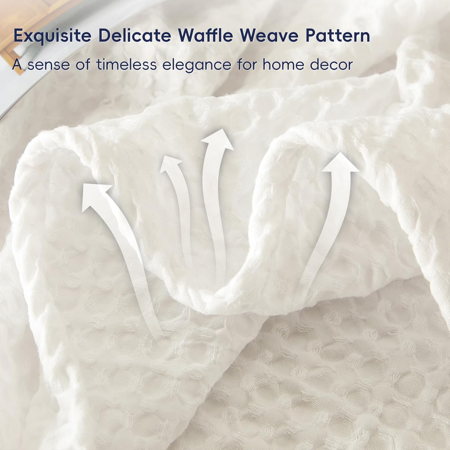 PHF Ultra Soft Waffle Weave Throw Blanket 50"x 60"- Washed Lightweight Breathable Cozy Woven Blanket for Bed - Aesthetic Decor for Couch Bedding Sofa Home Car - Coconut White