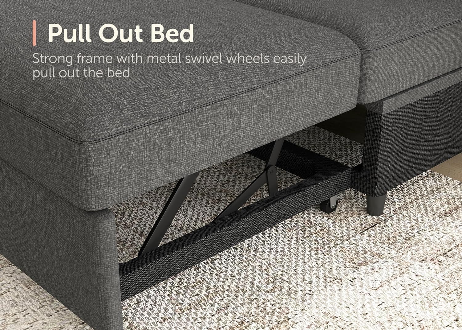 - ăSuper-Stability Frameă The steel frame of the 6-seater sectional sofa bed is easily pulled out to convert the sofa bed. The solid wood seat frame provides stable support, and the sectional sofa is made of spring wrap, high-density sponge and removable cushions for comfort and durability