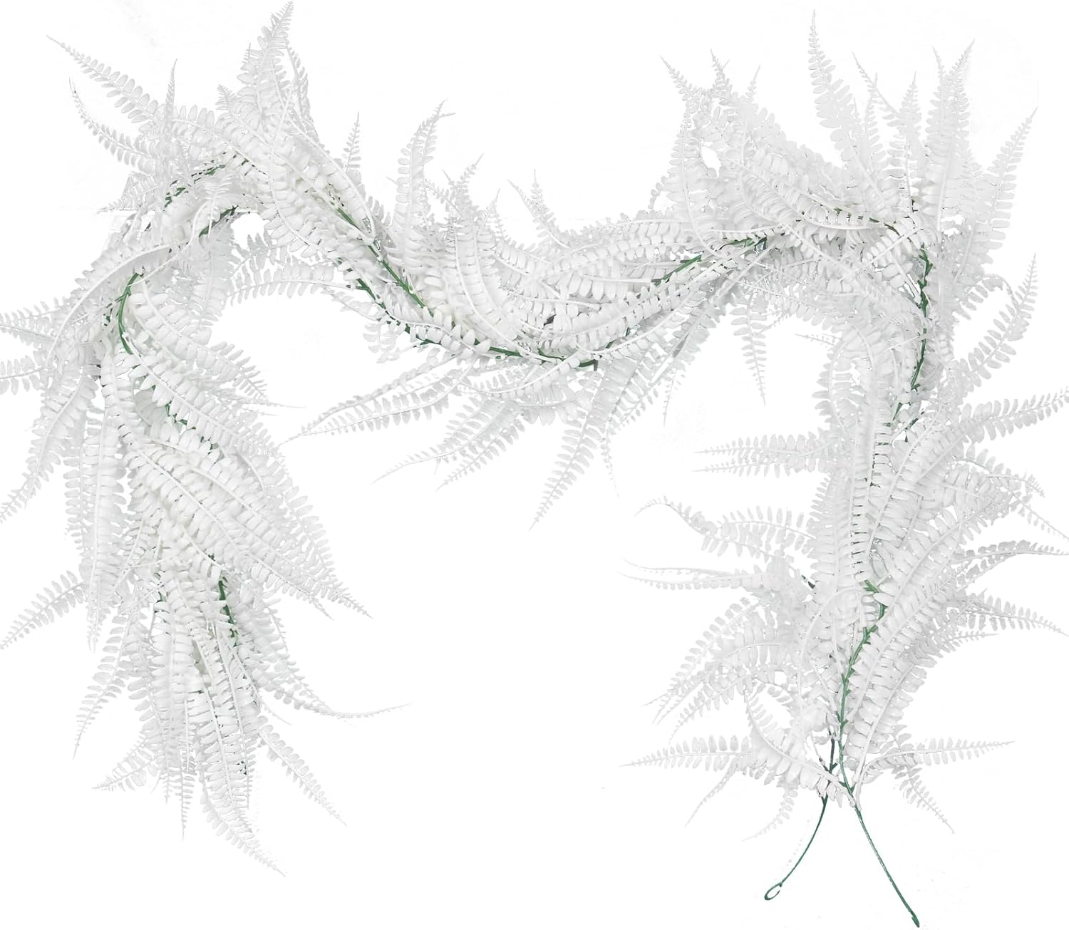 RECUTMS 2pcs Artificial Garland Faux Hanging Boston 6FT Fern Garlands Fake Greenery Ferns Plants for Halloween Thanksgiving Wedding Indoor Outdoor Party Wall Door Frame Fireplace Decor(White)