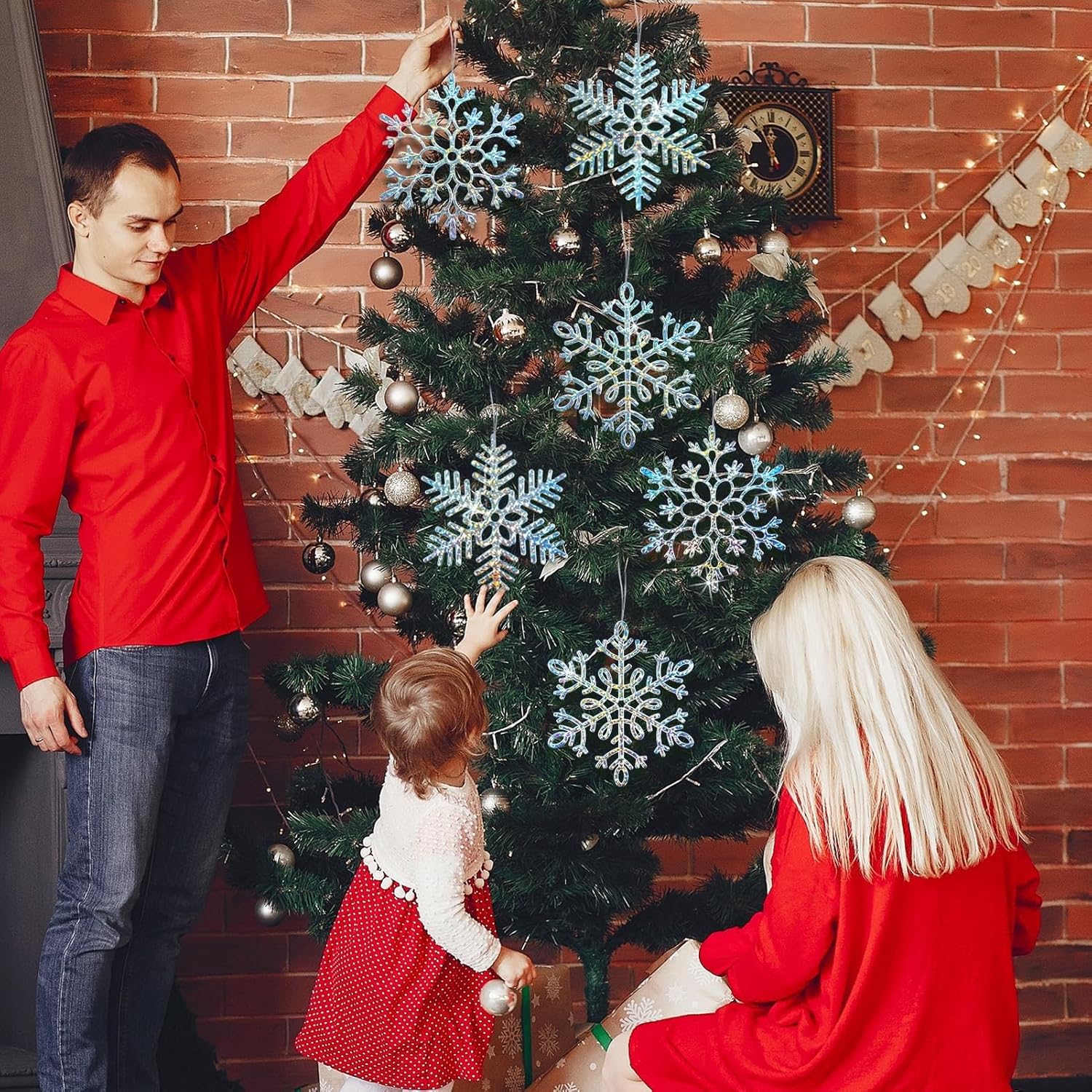 - COLORFUL DESIGN:The iridescent Christmas snowflakes ornaments clearance are made of lightweight hard plastic board, printed with exquisite laser technology, shiny and durable, enough to last throughout your Christmas or winter parties.