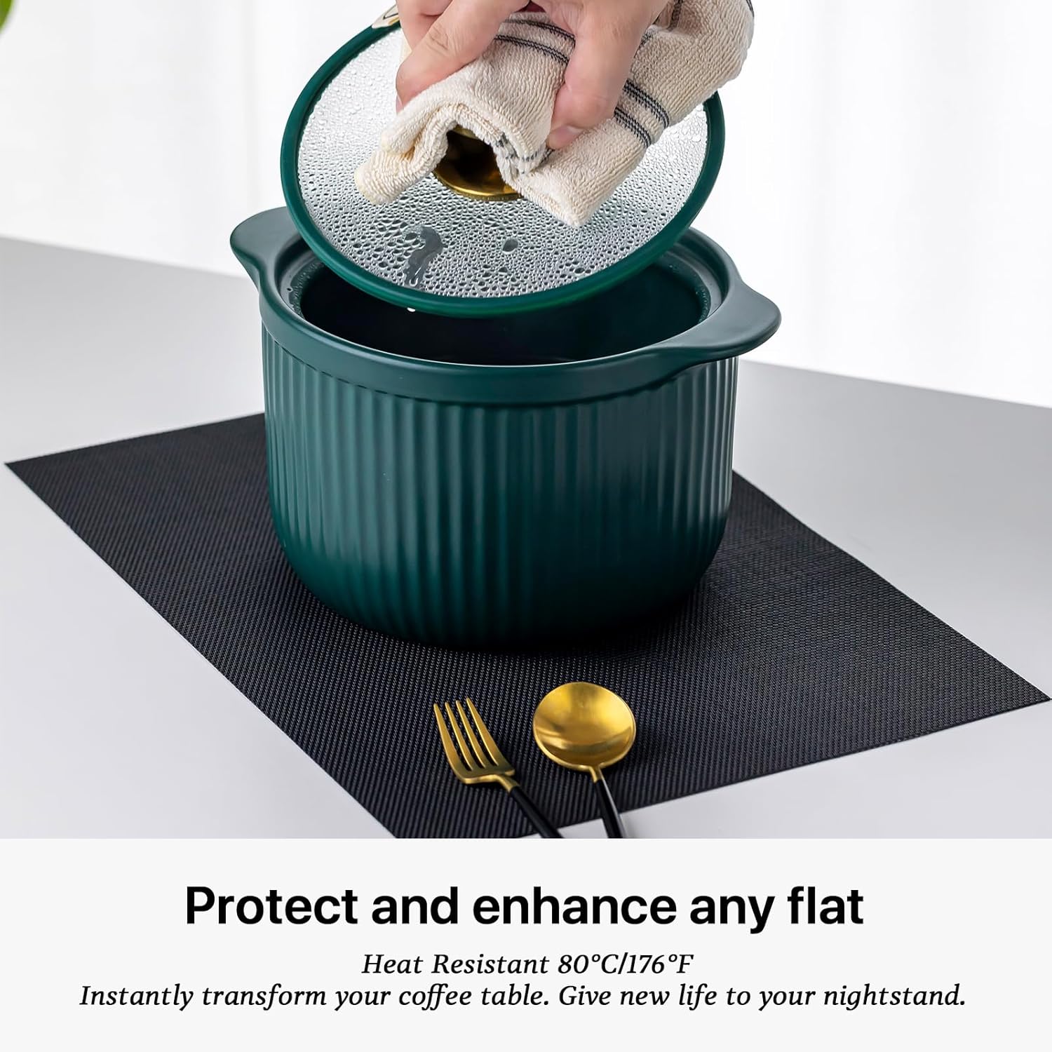 - EASY TO CLEAN:The washable placemats can be washed repeatedly.How to clean the place mats for kitchen table:Simply wipe with soap,water and a soft sponge or cloth.Scrub stubborn stains with a soft bristle-brush and a bleach-based cleanse.