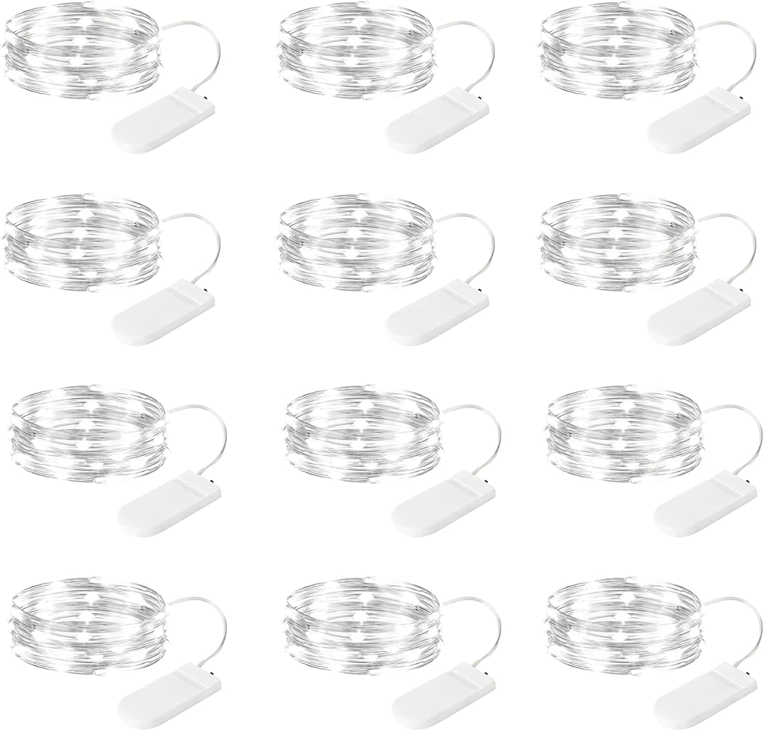 - 【 12 Pack Battery Operated LED Fairy Lights 】- Powered by 2 CR2032 batteries (included), the 7 feet micro fairy light with 20 upgraded energy-efficient LEDs is perfect for both everyday decorations as well as holiday decor. The thin copper wiring and small -sized LED bulbs will add a delicate and cozy touch to your personal space.