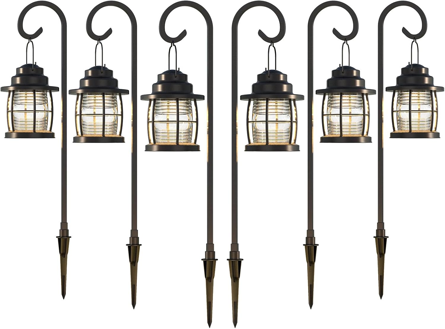 Low Voltage Pathway Lights 1.1W 12V AC Outdoor Shepherd Hook Path Lights 6PK 32 Lumen Metal Landscape Lighting Kit Warm White Hardwired Walkway Light with Connectors and Stakes