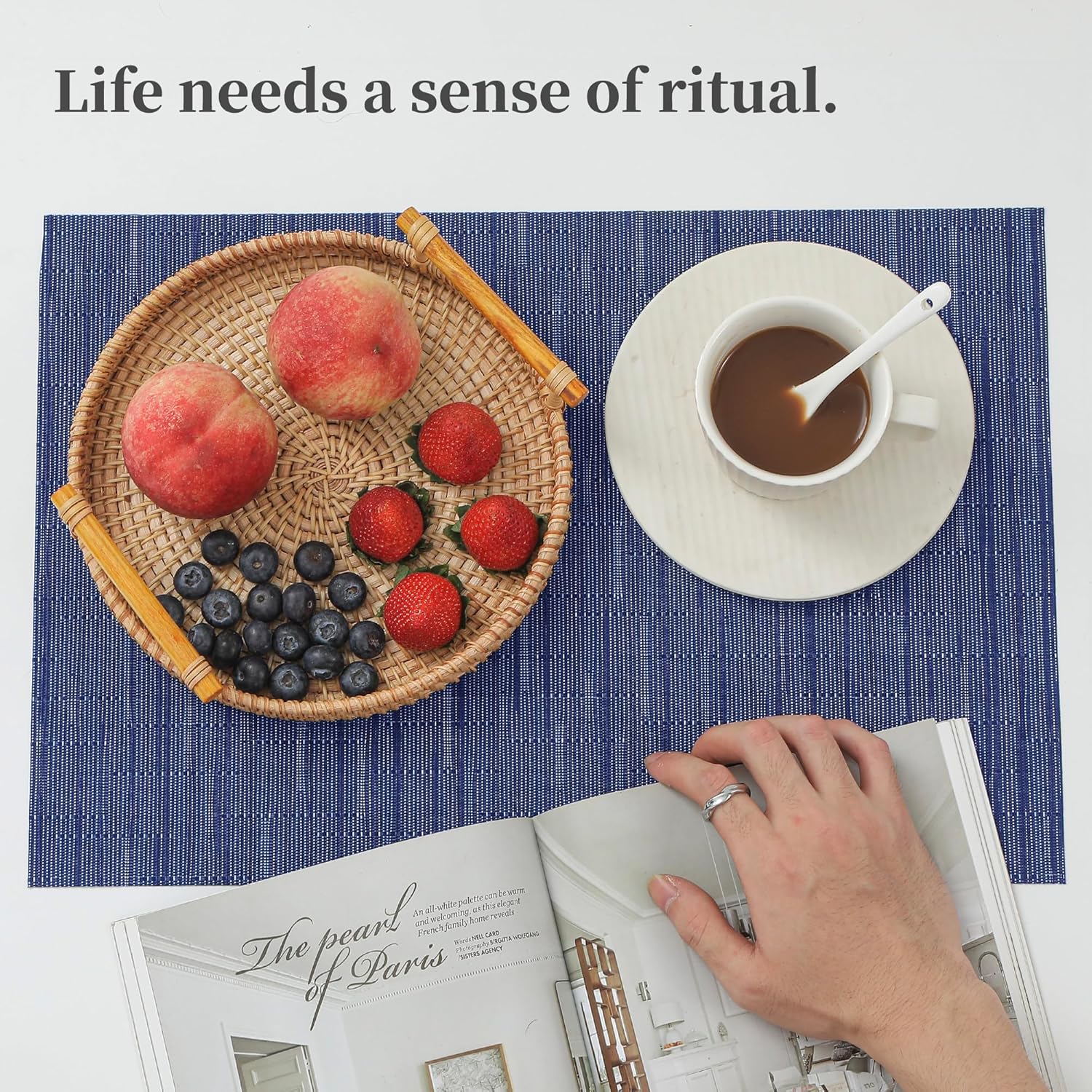 Leetaltree Blue Placemats Set of 8 - Heat Resistant Non-Slip Place mats for Dining Table, Washable Durable PVC Vinyl Woven Table Mats(Blue, 8)