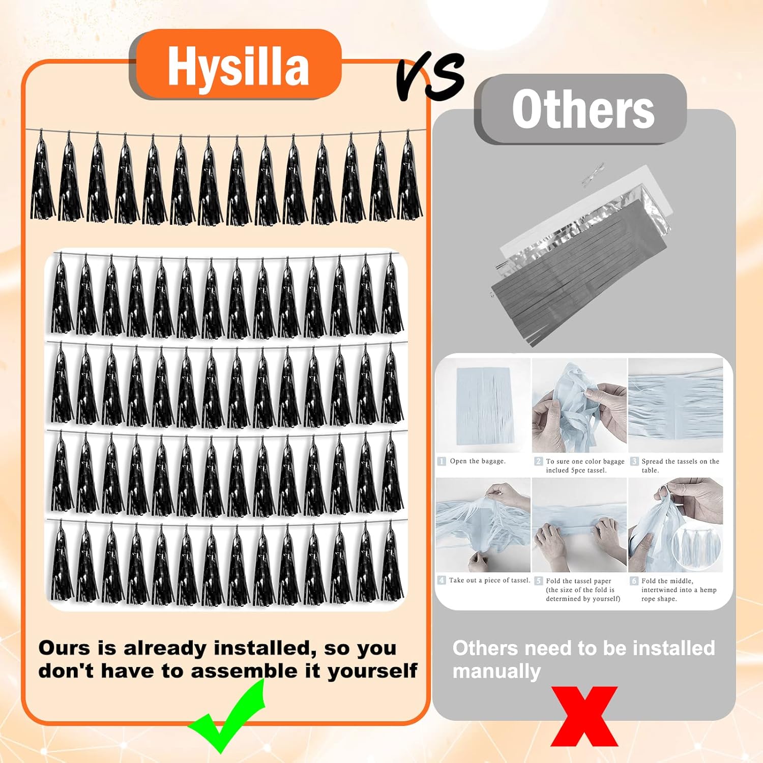 - 【Perfect Party Decoration】The black tinsel garlands are designed in a metallic Fringe, bright, and beautiful, at the same time, they shine in the sun, and these gorgeous tassel garlands create a wonderful backdrop or centerpiece for your party space. and bring you, your family, and your friend's good Visual effects. your party many emotional and touching moments where a lot of pictures will be taken and everybody will have a wonderful time together.